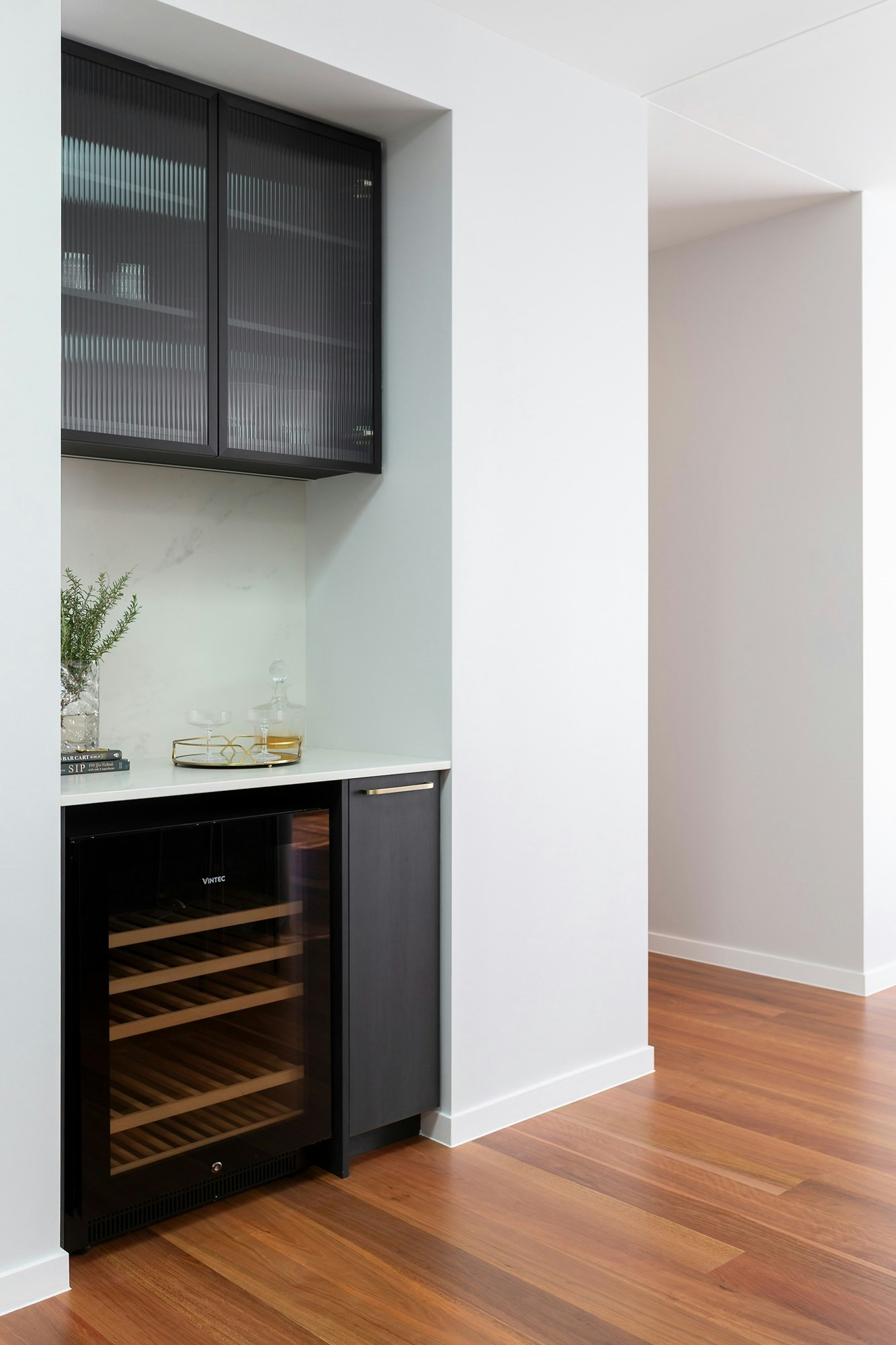“Forrest is an exercise in simplicity through layered design and sleek, dark interior architecture: an elegant nod to modern art deco. The soft wood grains meet bold black aluminium doors, fluted glass, and curved furniture, creating a rich interplay of contrasts and textures through light and shadow,” begins Shivani Gounder, head of Madison Interiors.