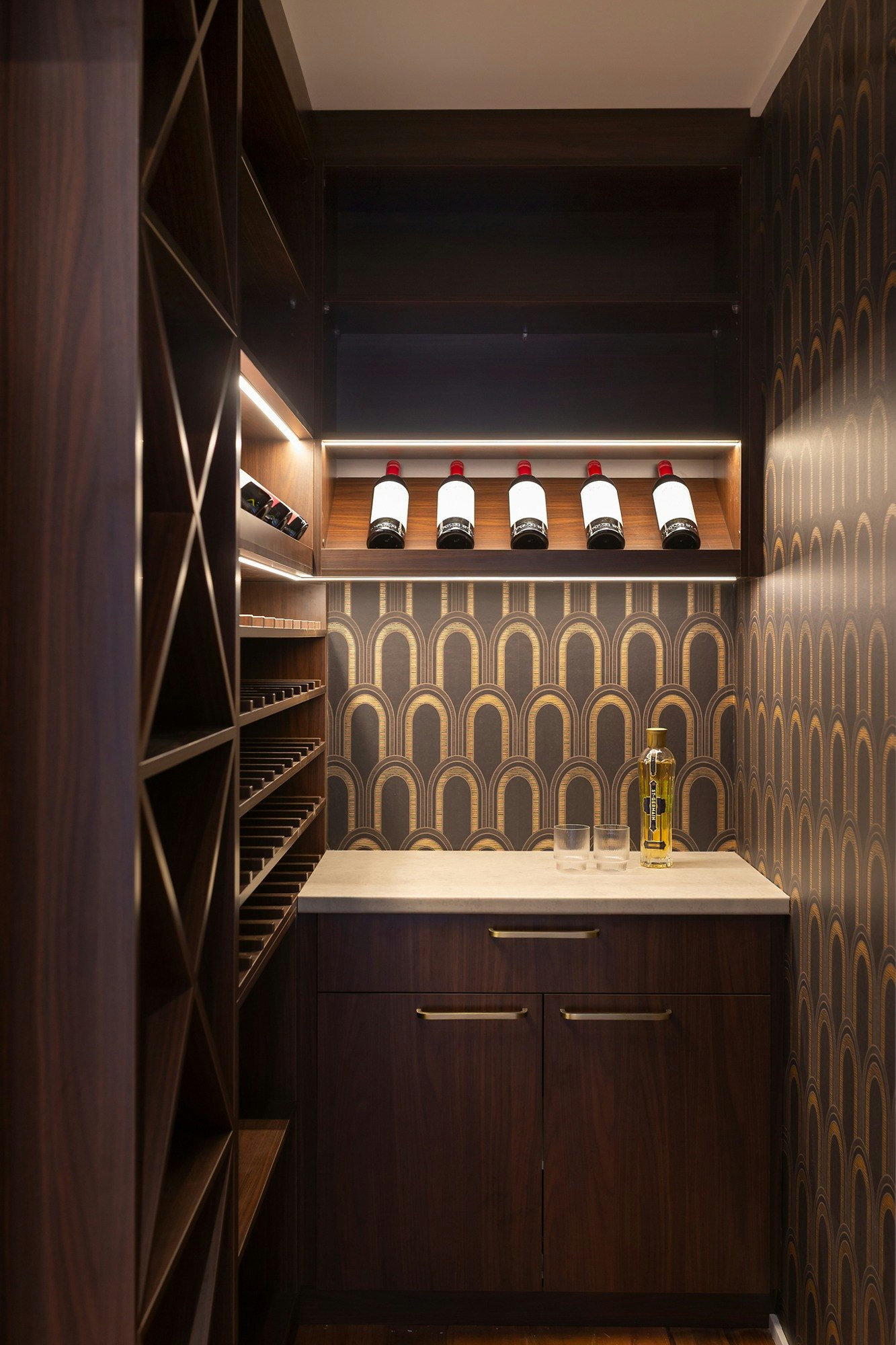 She continues: “The kitchen features fluted glass cabinetry that adds a touch of serene intensity, reinforcing the art deco narrative without overwhelming it. The benchtop in Dekton Marina anchors the space with understated luxury. Here, form and function go hand in hand: every high-end detail is meticulously thought out, and every finish tells its own story.”