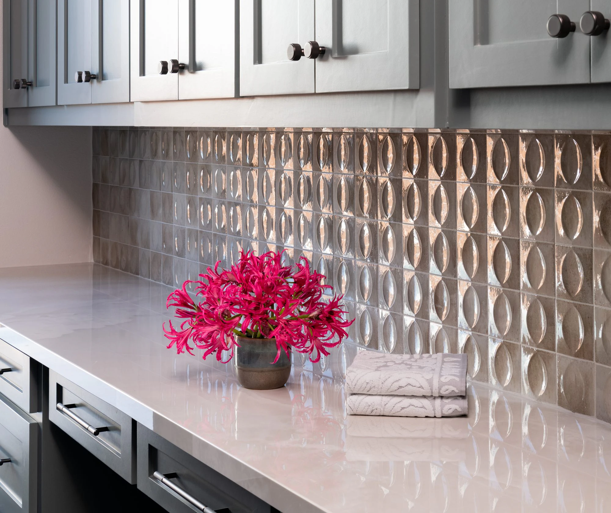 Dekton Laurent is also featured as the countertop in the secondary kitchen, and Silestone Desert Silver in secondary utility spaces. Across every space, the materials deliver durability without compromising the project’s refined aesthetic.
