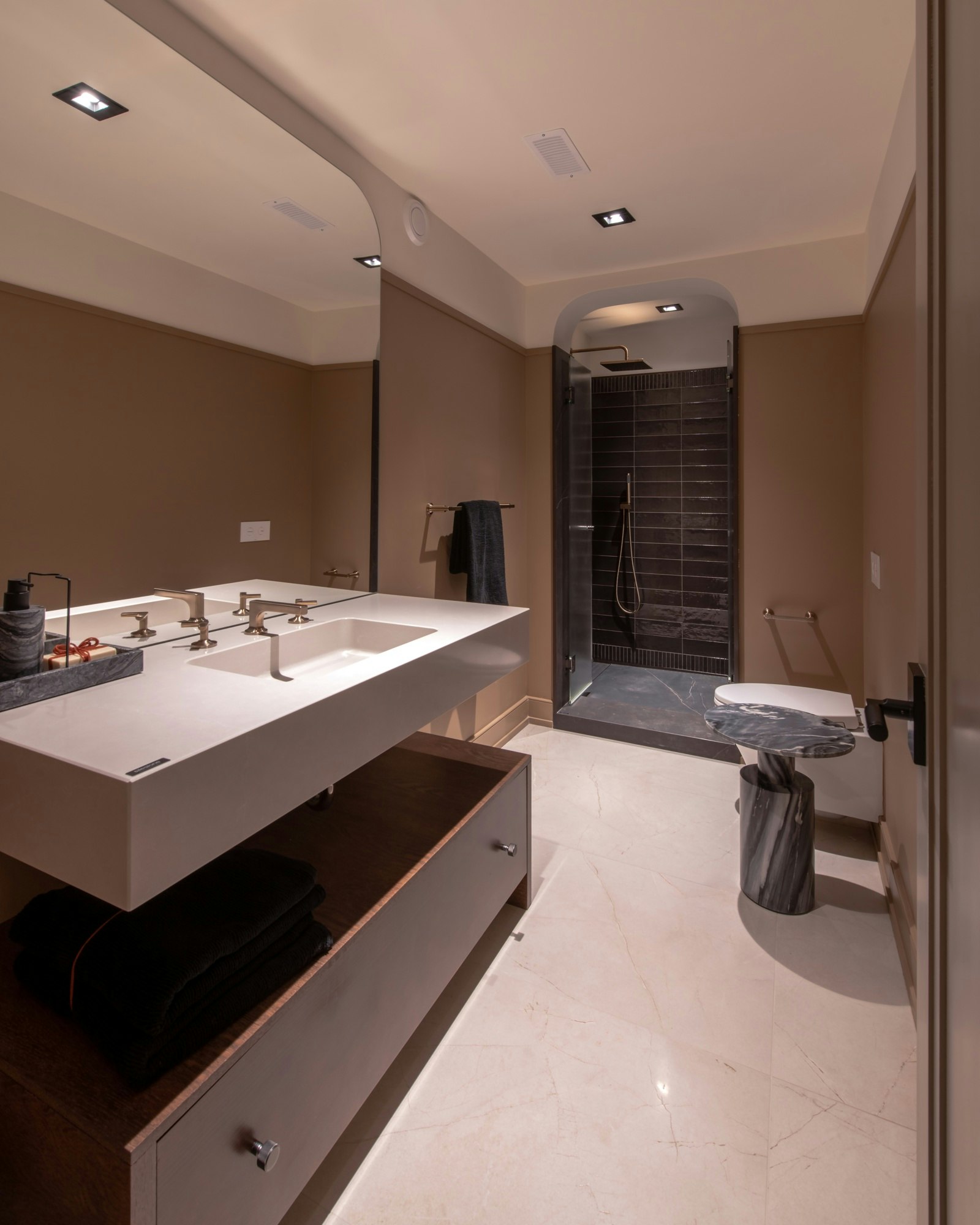 In this new edition, Vine has decided to reinterpret the glamorous art deco style. “From the moment you enter, you are greeted by the clean lines and geometric elegance that defined the 1920s, now reimagined with modern materials and a softer, more liveable feel. This is evident in the subtle interplay between curves and symmetry and in the rich yet restrained material palette, featuring lacquered woods, layers of warm and neutral textures, fluted glass, and polished metals. All these elements create a harmonious blend of vintage charm and contemporary sophistication,” he explains.