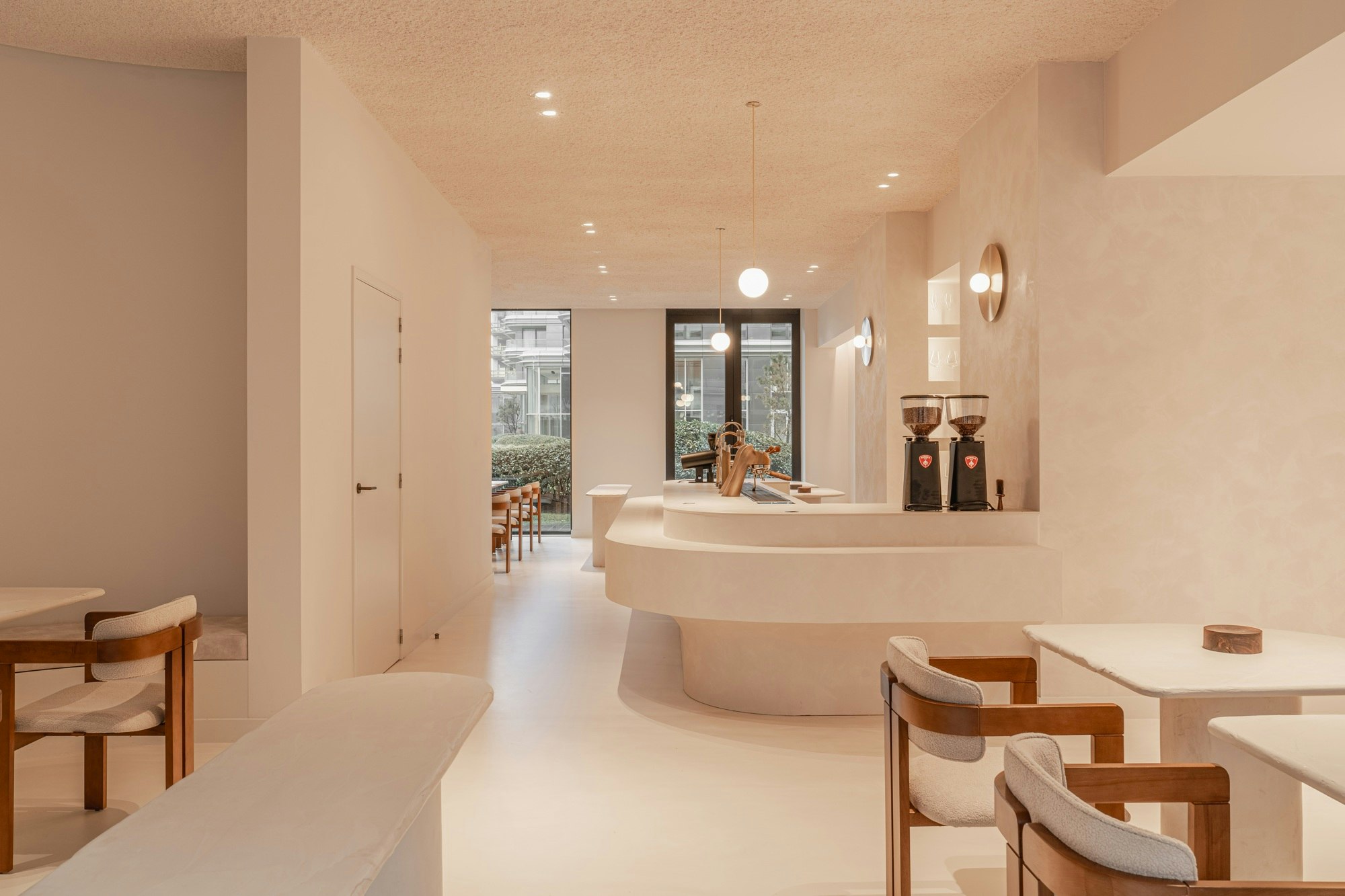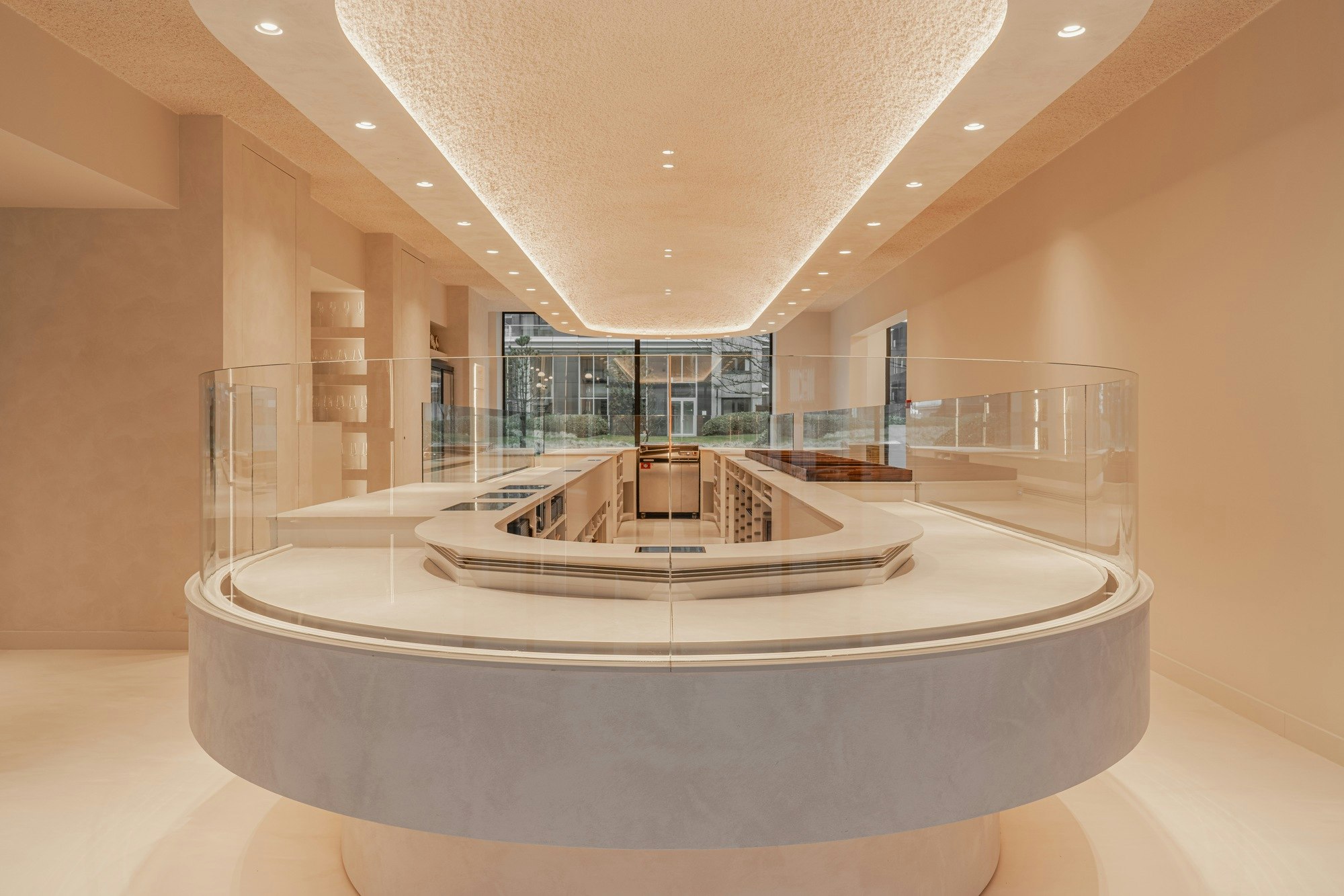 The beautiful and delicious signature sweets of Oosterbrood could only have a setting to match: the one designed by Reverence Interiors for them. It is an environment of light neutrals, wabi-sabi essence, sinuous shapes, and golden details that elevate the overall tone of a space designed for sensory delight and pleasure.