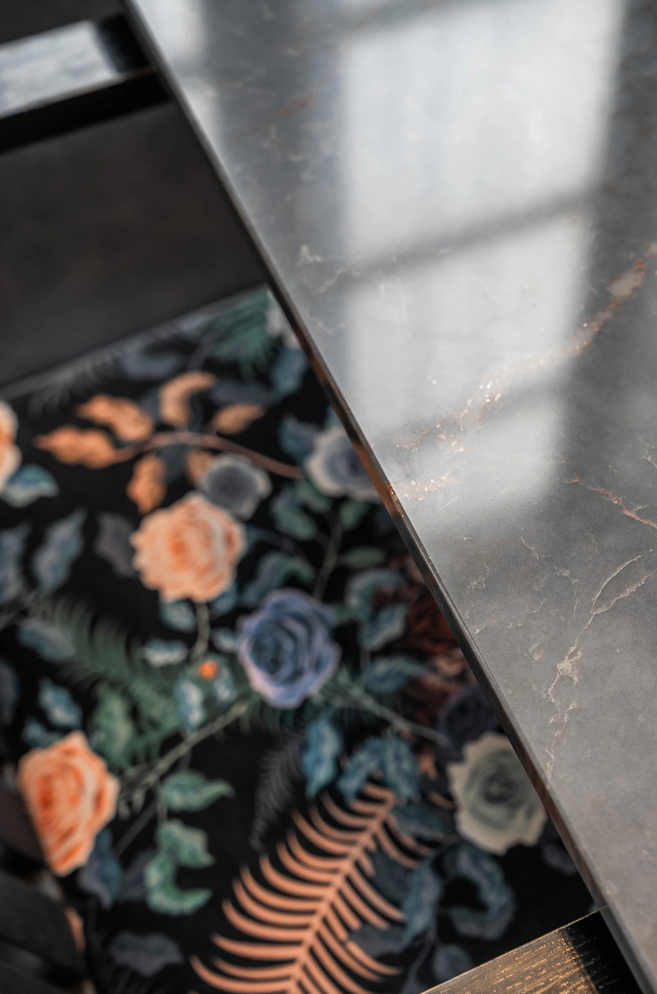 In the bar area of the restaurant, the eye is immediately drawn to Silestone Parisien Bleu, used for the bar counter and table tops. Its deep, nuanced tone brings a graphic and contemporary character to the space, while engaging in a subtle dialogue with the existing architecture and the bespoke furniture designed by the architect.