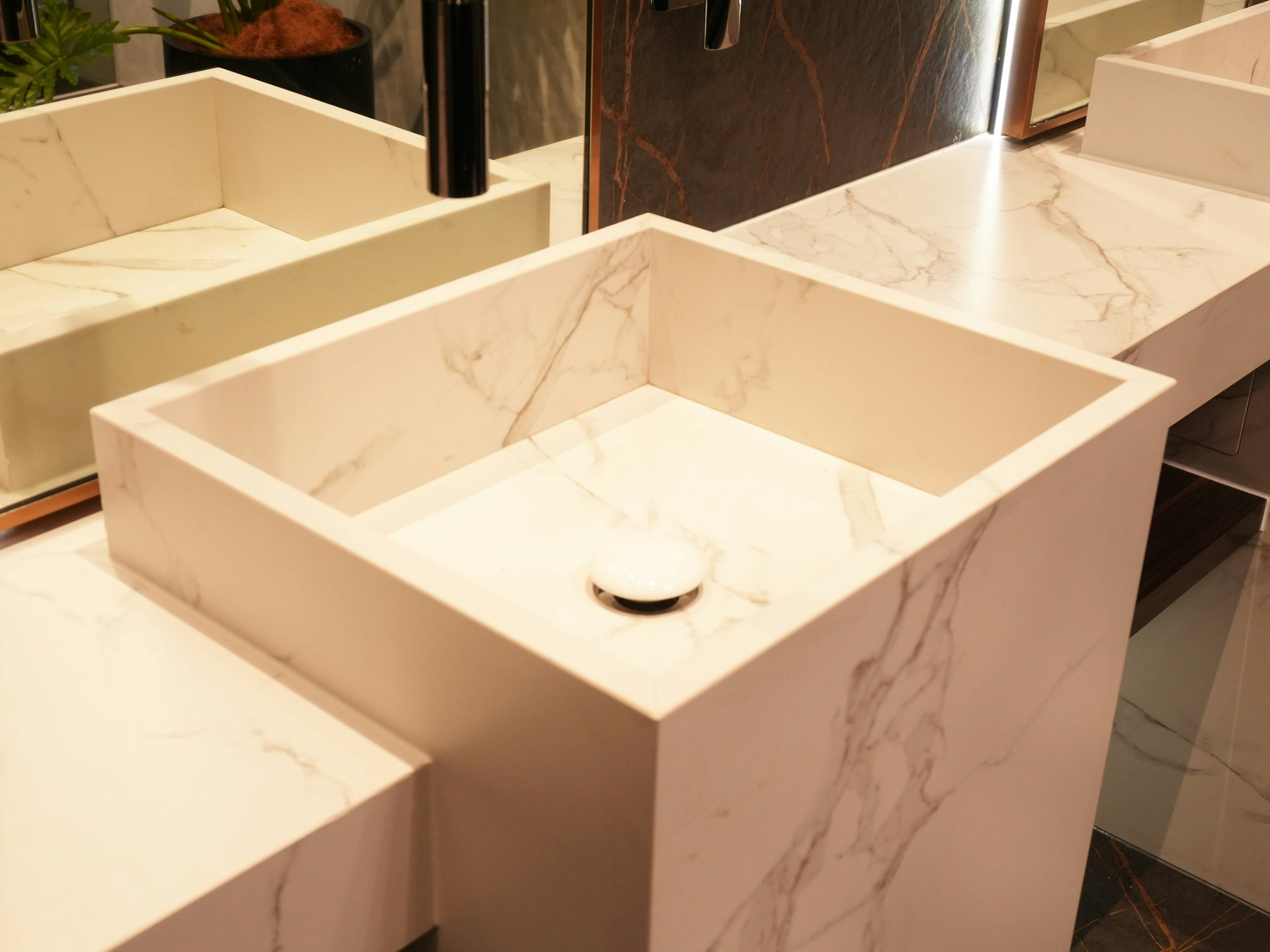 Wall cladding, worktops and flooring for bathrooms and kitchens, kitchen splashback, washbasin, toothbrush holder