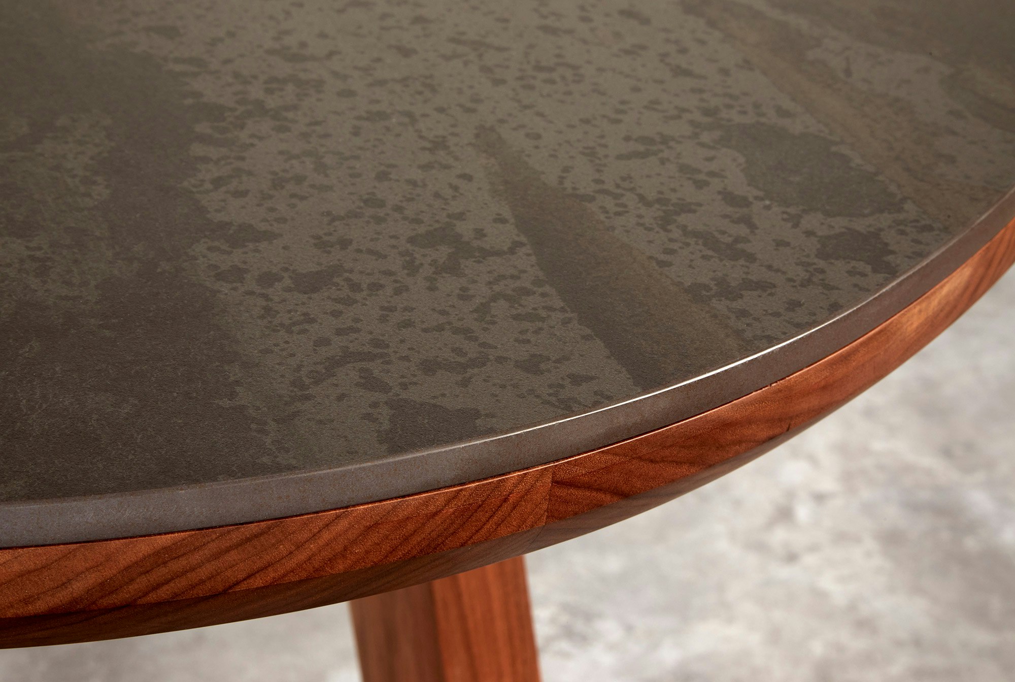 The choice of an oval shape was no accident: Van Ludwig was clear that he wanted to encourage gatherings and conversations around the table and create an intimate and welcoming space. The user experience begins with the bevelled edge of the table, continues through its wooden structure and ends with the stone tabletop featuring Dekton, a material chosen for both its beauty and commitment to sustainability. Van Ludwig’s visit to the Cosentino Industrial Park and Headquarters in Almería left a deep impression on him and encouraged him to use Dekton in the design, both for the aesthetics of the material and for its sustainability properties, including a carbon neutral life cycle.
