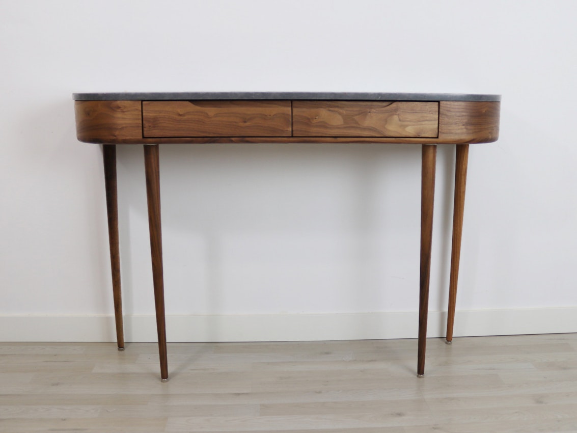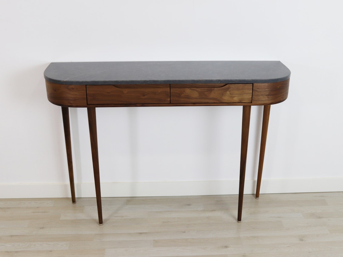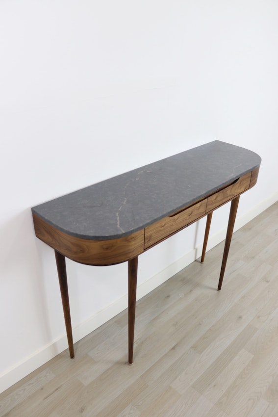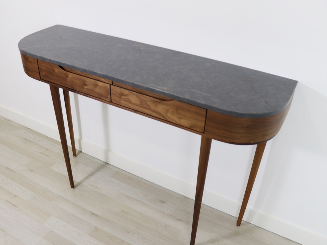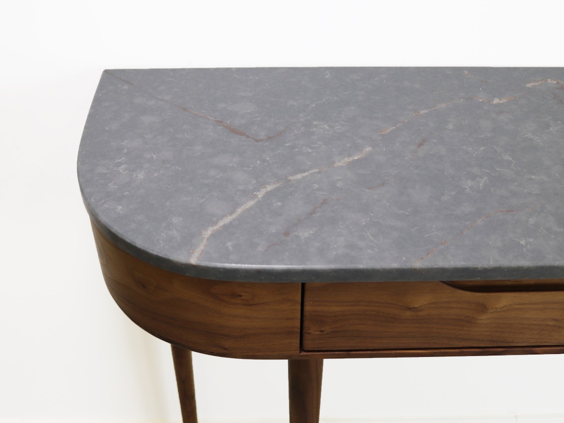 Proyecto Peaslake, Reino Unido. El Silestone Parisien Blue ha sido ideal para crear una pieza tan elegante como esta mesa de consola en Nogal.