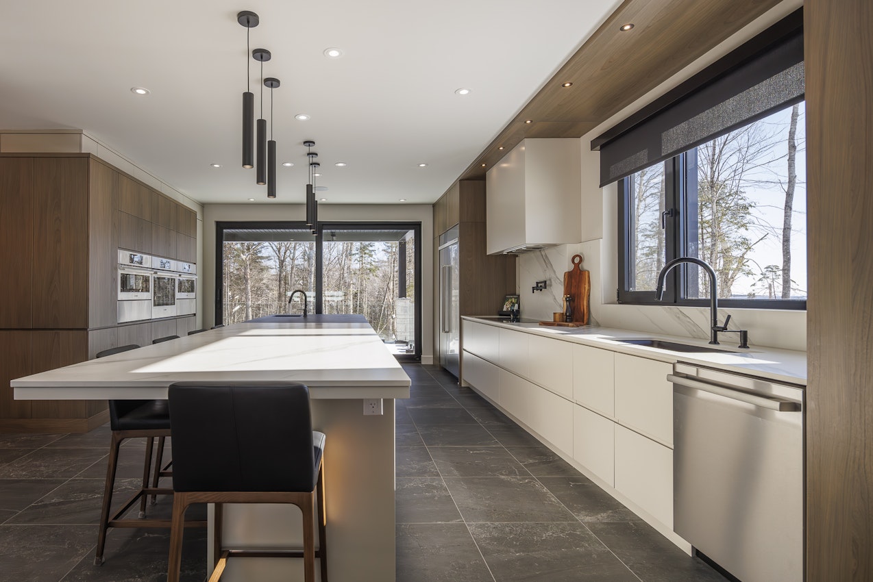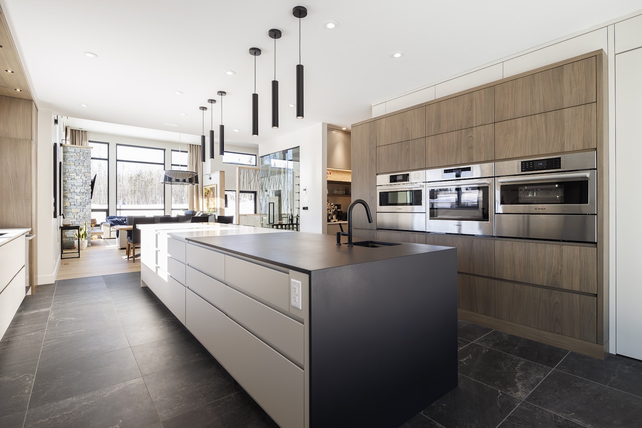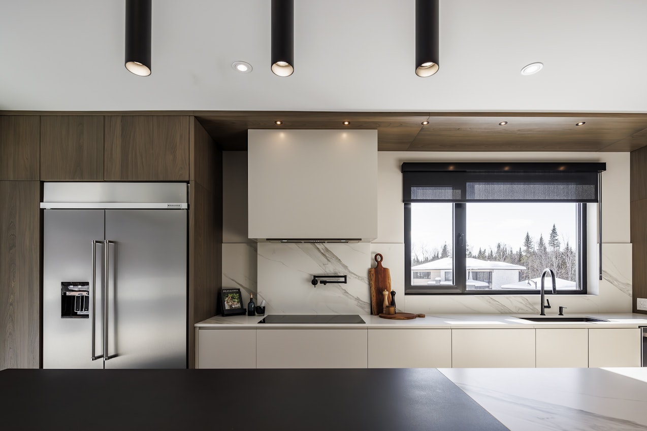 Avec son îlot central audacieux en Dekton Domoos et Opera et son mur d’appareils intégré au millimètre près, la cuisine du projet Lac Beauport incarne un luxe discret et résolument contemporain. Pensée comme le cœur d’un projet multipièce haut de gamme, elle marie fonctionnalité absolue et lignes épurées, dans une continuité parfaite avec les autres espaces de vie. Un projet finaliste au Prix Nobilis 2025 – Cuisine plus de 75 000 $.