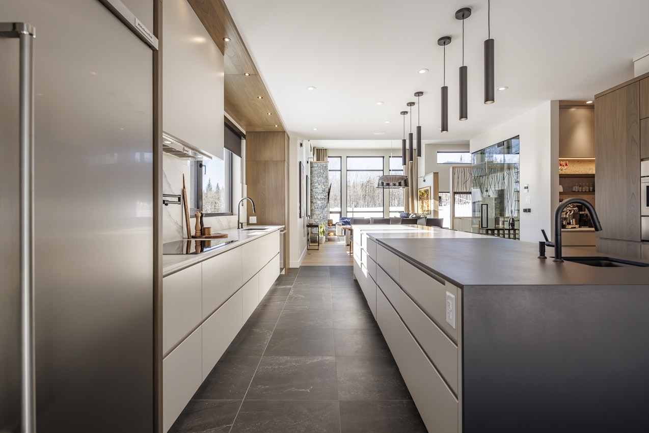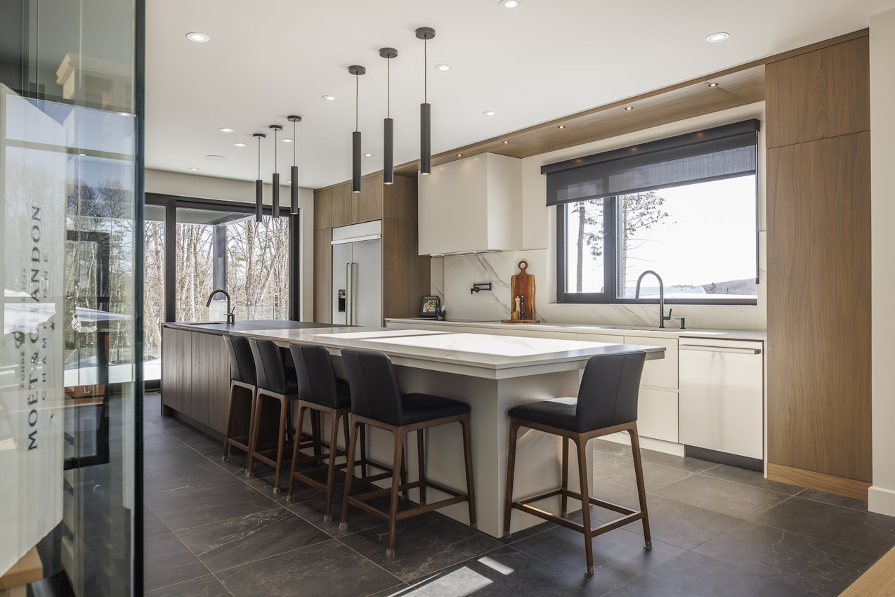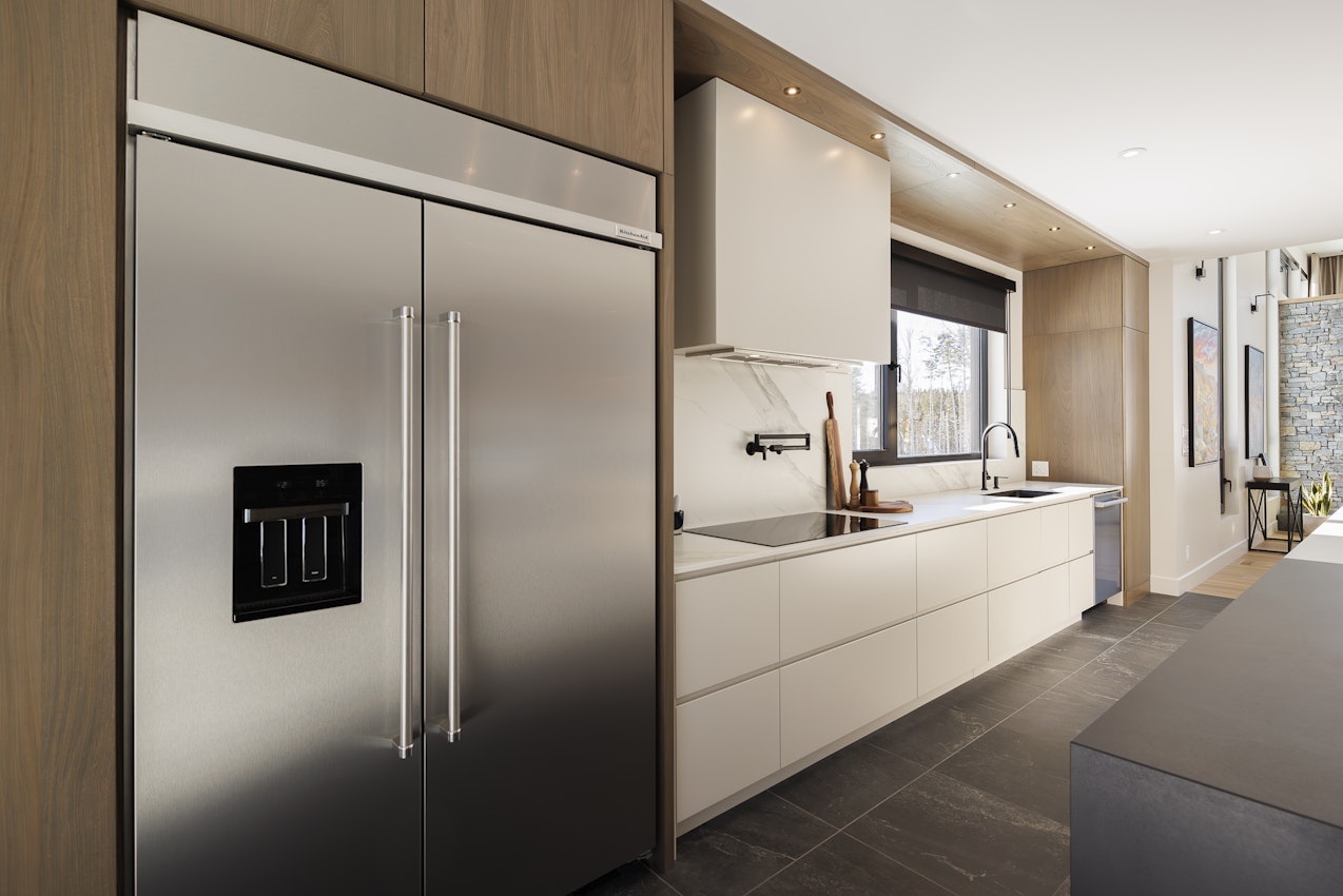 Avec son îlot central audacieux en Dekton Domoos et Opera et son mur d’appareils intégré au millimètre près, la cuisine du projet Lac Beauport incarne un luxe discret et résolument contemporain. Pensée comme le cœur d’un projet multipièce haut de gamme, elle marie fonctionnalité absolue et lignes épurées, dans une continuité parfaite avec les autres espaces de vie. Un projet finaliste au Prix Nobilis 2025 – Cuisine plus de 75 000 $.