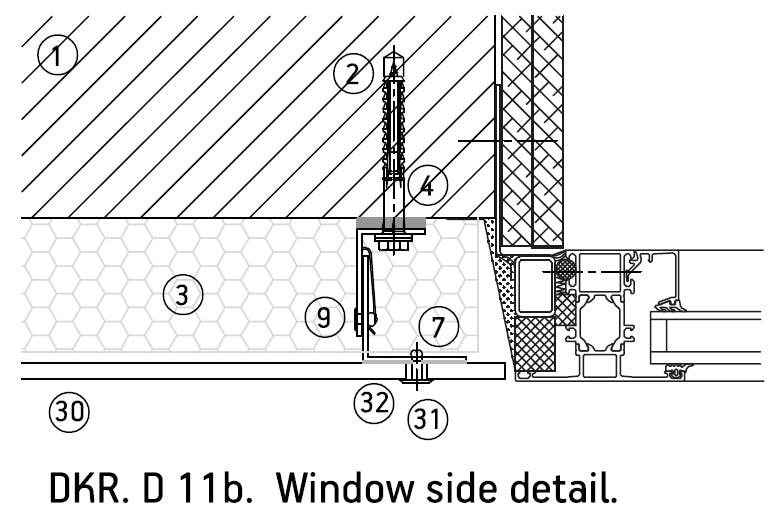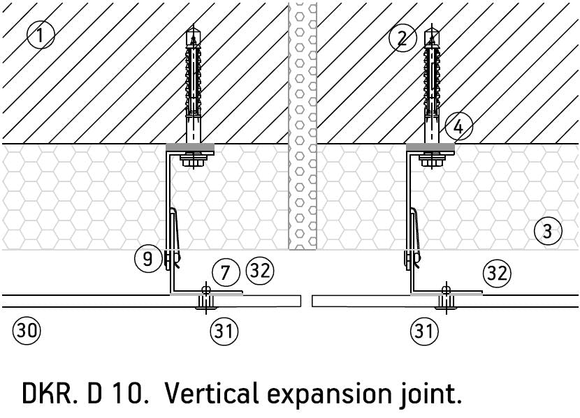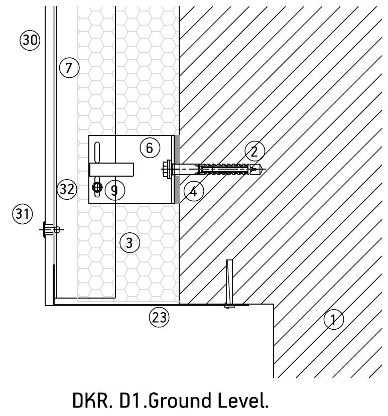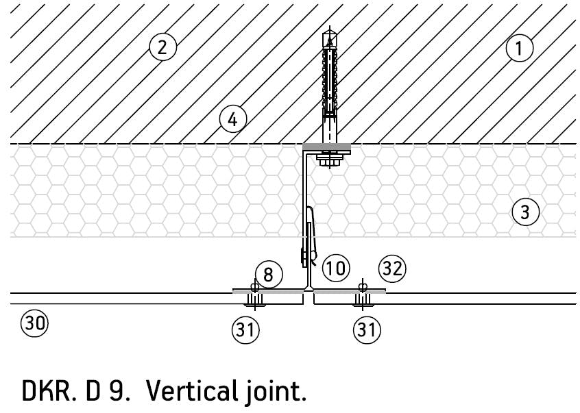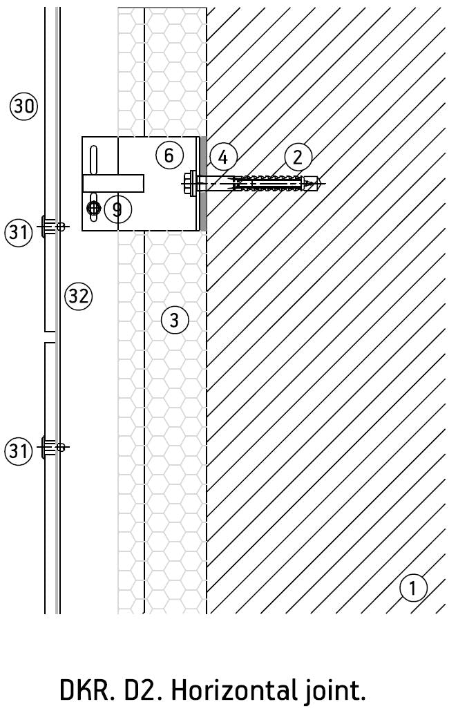 DKR system allows Dekton® pieces of 4 and 8 mm thickness to be directly riveted onto vertical profiles or substructure, reducing material and installation costs. Rivets and drills can be placed in the piece in grids of different density to meet with the project resistance requirements. The two fixed points that are installed with cylinders support the piece weight, while the rest of rivets support the wind loads, allowing also a flexible joint design.