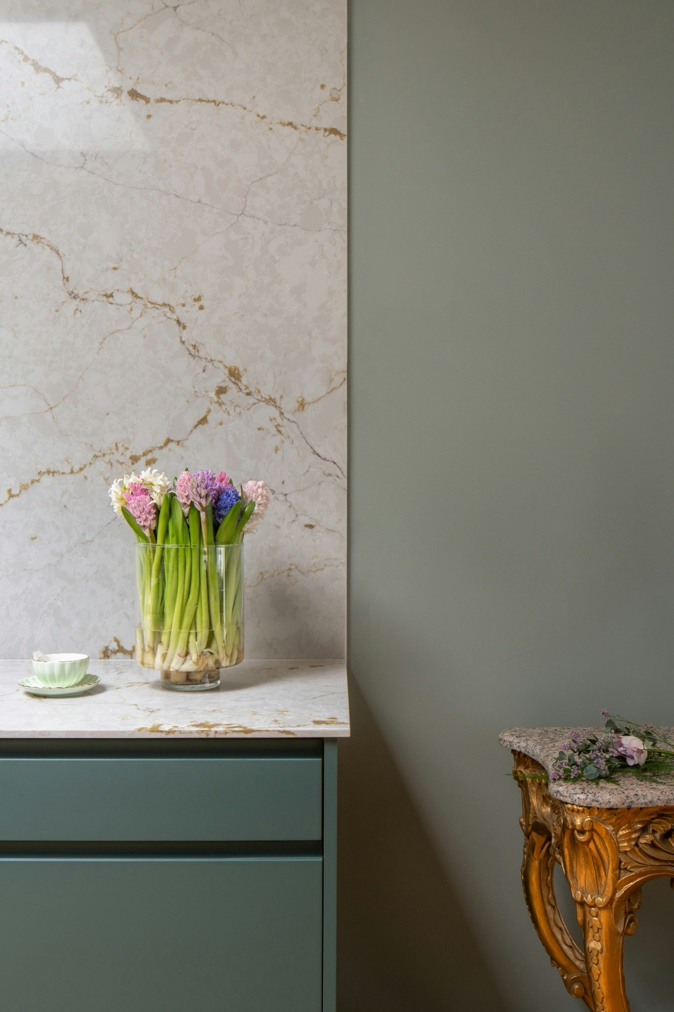 After visiting Cosentino City in Fonthill, the client was immediately drawn to one of Silestone's latest shades: Versailles Ivory. It is the warmest colour in the collection, featuring delicate bi-colour marbling and subtle gradients illuminated by golden flecks integrated into the surface. A tone that exudes elegance and evokes the classic opulence of the Palace of Versailles, reinterpreted through a contemporary lens.