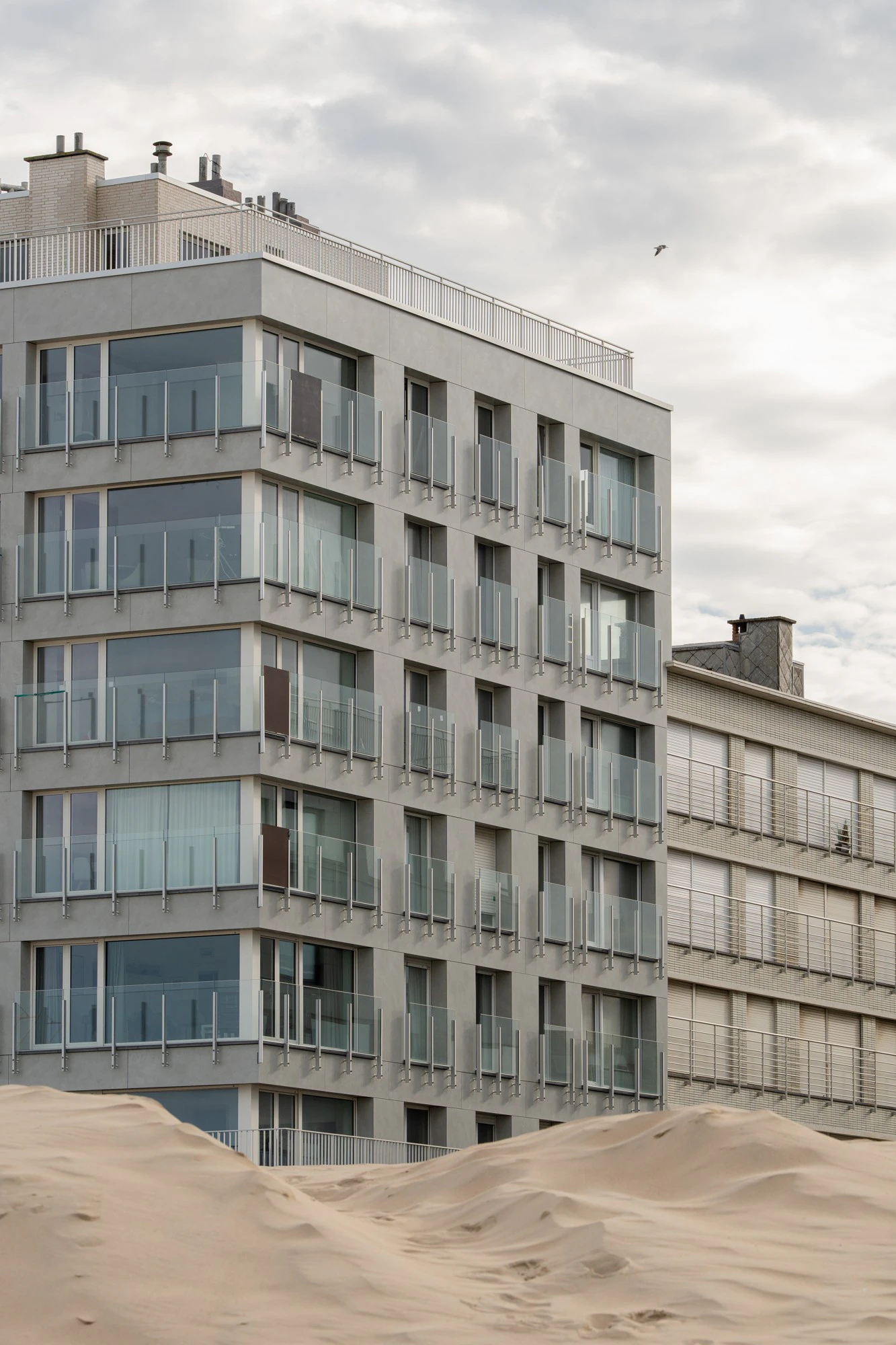 The North Sea washes the beaches of Koksijde, a municipality in the province of West Flanders and a tourist area. And right there, at the mercy of the weather, which is far from mild in these latitudes, stands the Les Ancres building, whose façade has recently been renovated to enhance both its architectural identity and long-term performance. The Geldhof Decoene Architecten studio reimagined the exterior with a clean and contemporary expression that responds to the coastal context in which the building is located, applying Dekton to the façade.