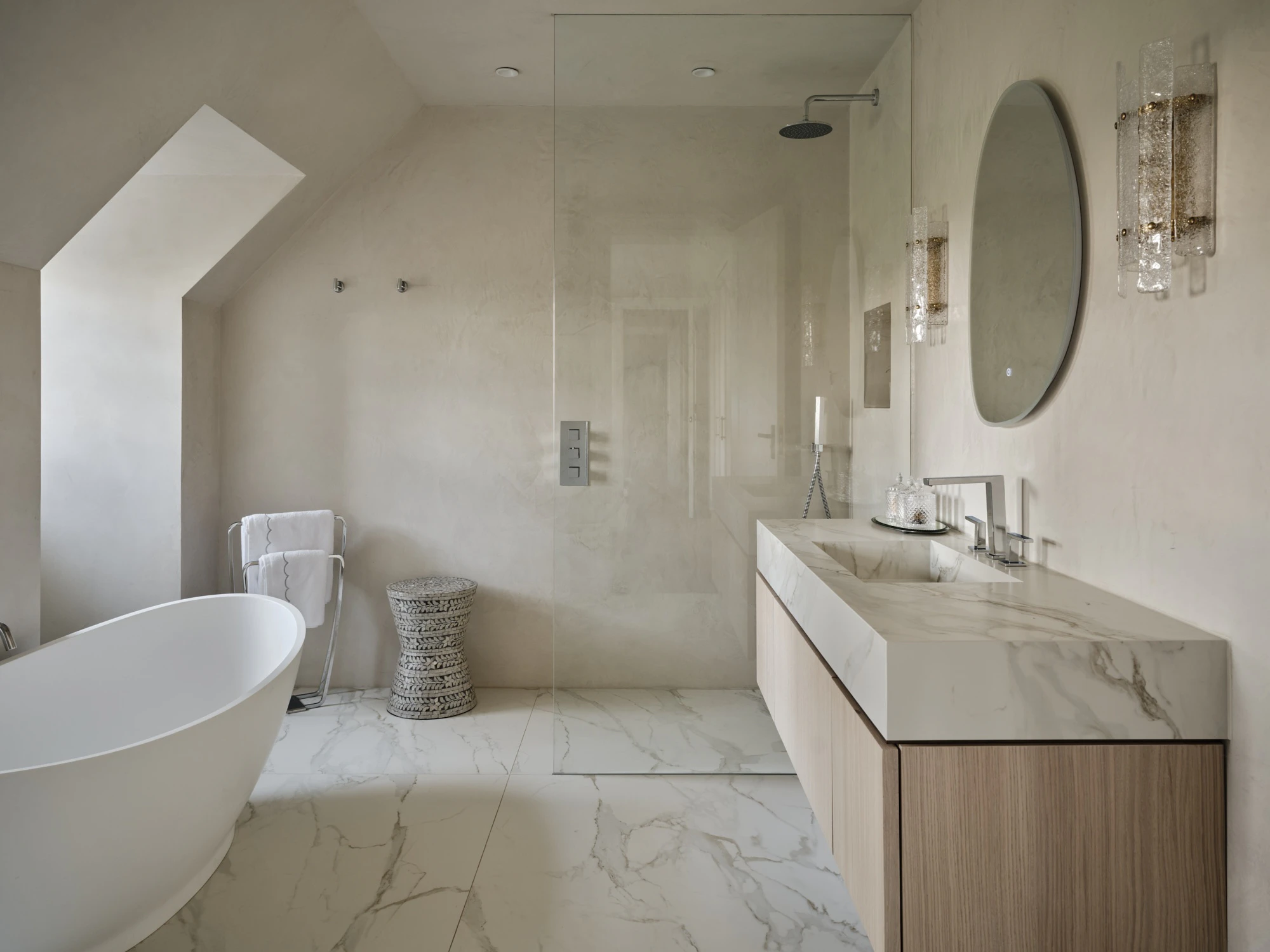 The studio, specialising in high-end private residences, renovations, new builds, and nautical projects, adopts a comprehensive approach that includes interior design, bespoke joinery, lighting, textiles, styling, and full project management. In Oxshott, this holistic vision translates into a serene, contemporary, and discreetly luxurious home designed for a family living in the space full-time.