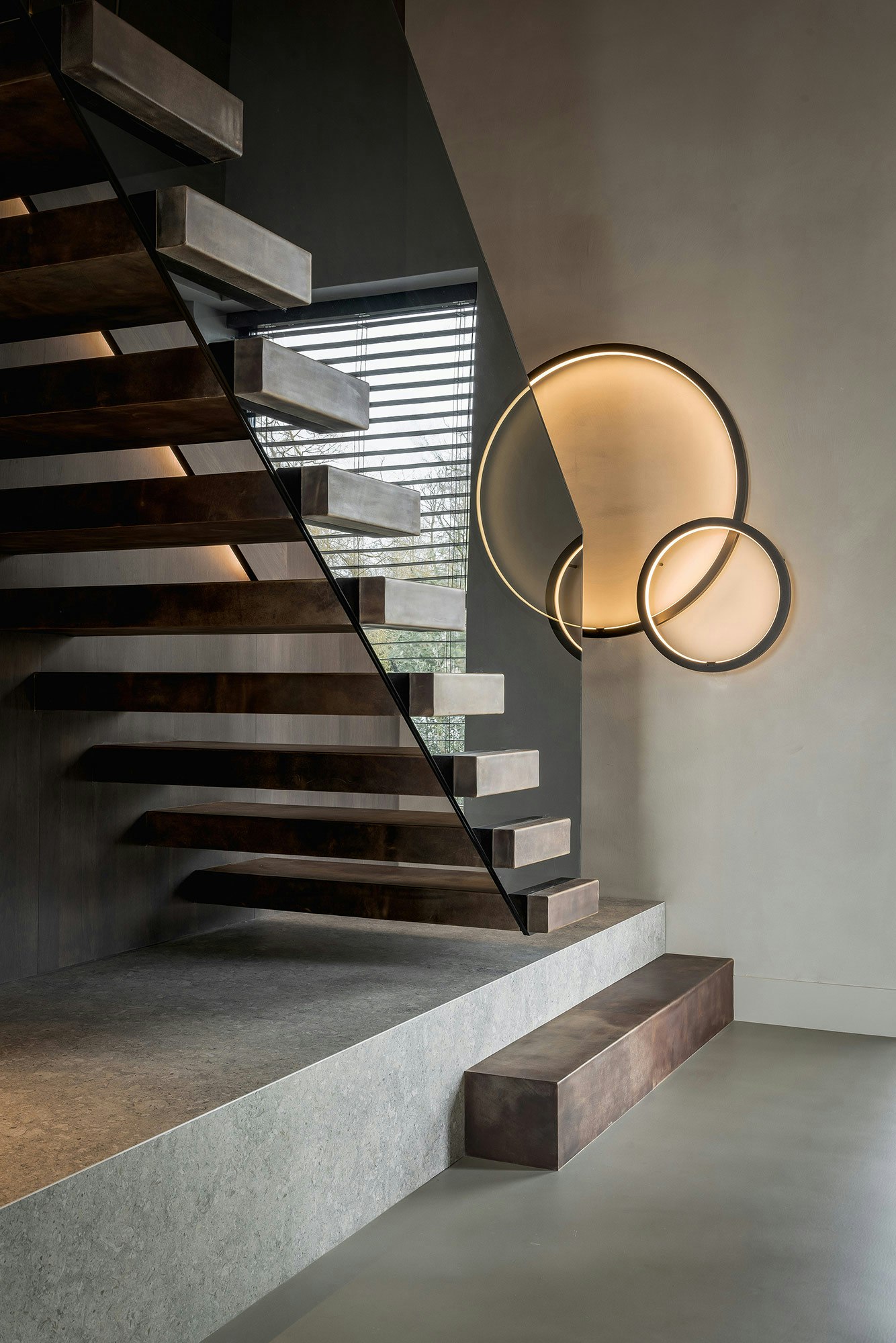 Studio MBC created a unique interior in this villa, where custom work, natural materials, and a well-thought-out lighting plan come together. The result is a chic home that exudes luxury and comfort, with a design that combines the robustness of natural materials with refined details and innovative lighting. This creates a serene oasis by the water.