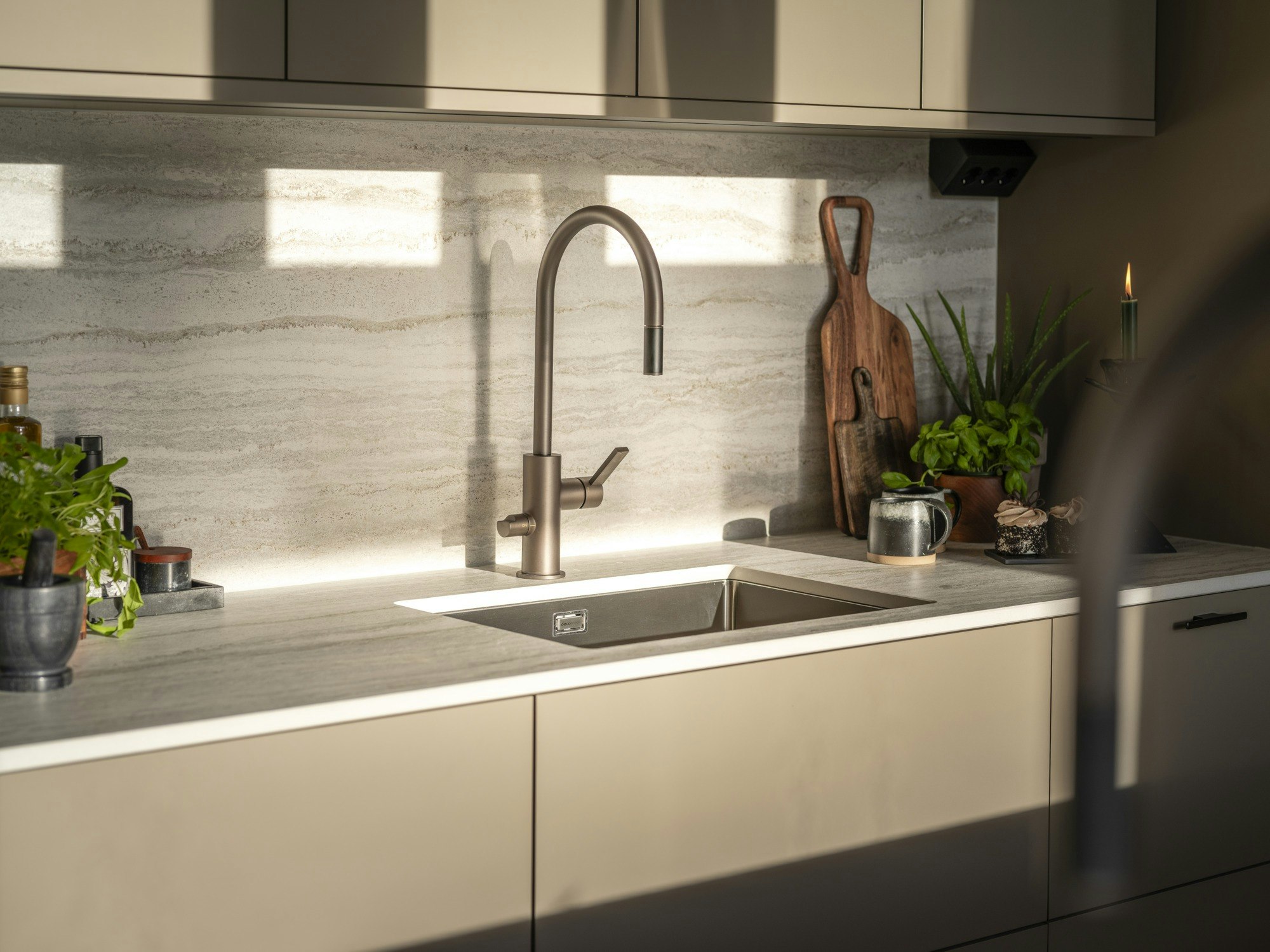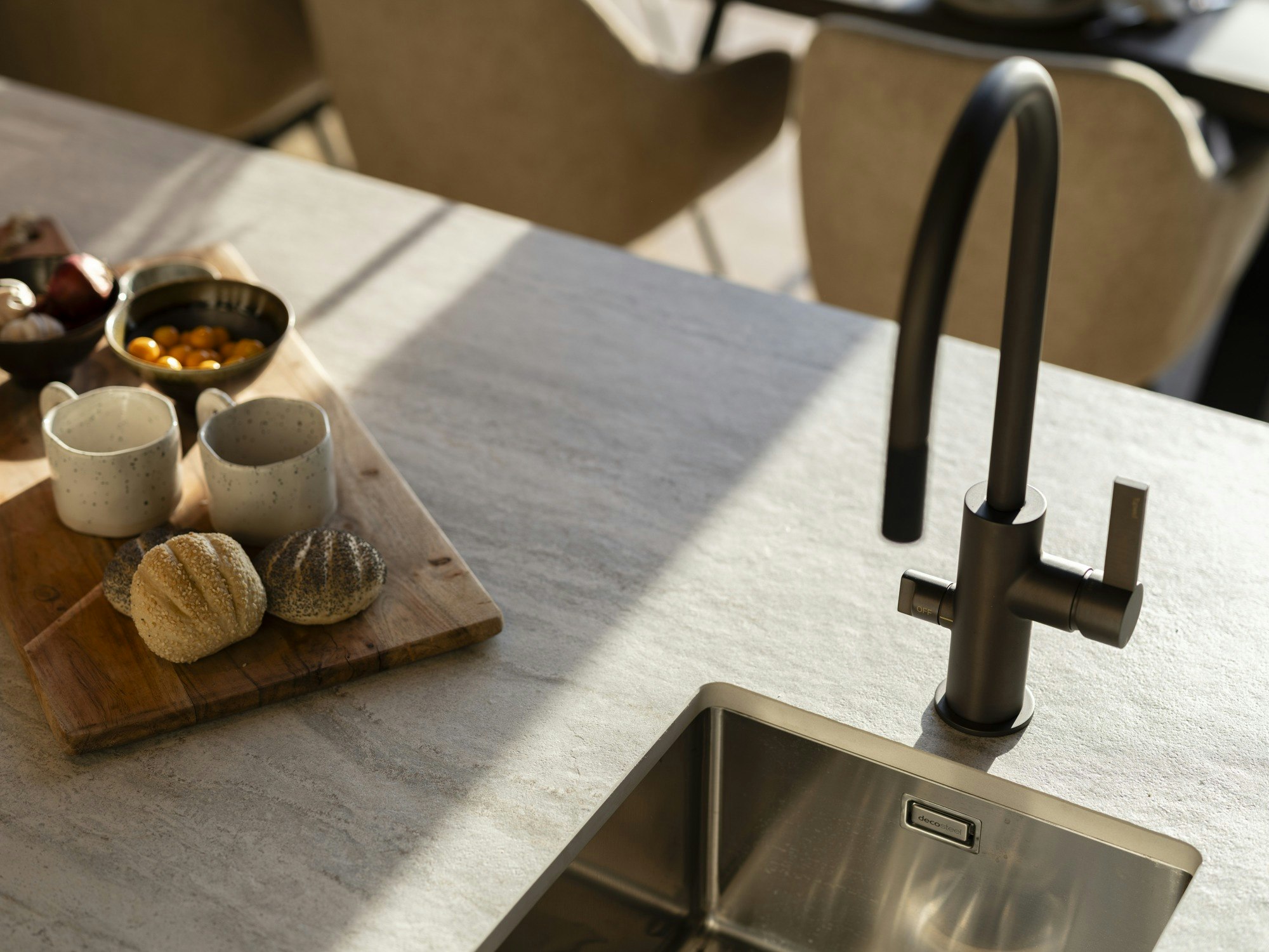 But there was a decisive aspect for Marko: he needed an extremely durable worktop, capable of withstanding direct heat, impacts, and stains, especially because the kitchen is closely linked to his hobbies. “One of Marko's interests is hunting and also cooking, so during preparation things can get very hot,” notes Ulrika. That’s why the choice of material was clear. “Dekton is an unbeatable material against scratches, stains, and heat,” says the designer. “Hot pots and pans can be placed directly on the worktop.”