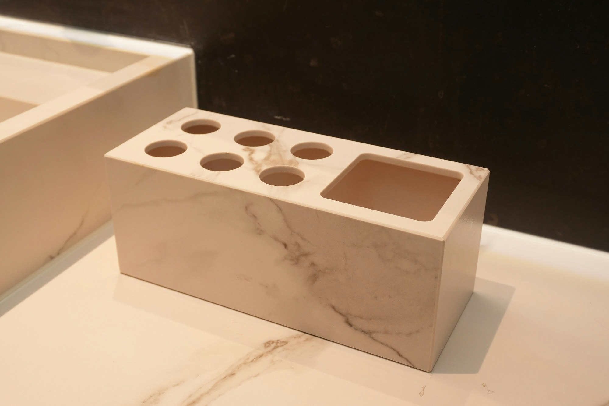 Wall cladding, worktops and flooring for bathrooms and kitchens, kitchen splashback, washbasin, toothbrush holder