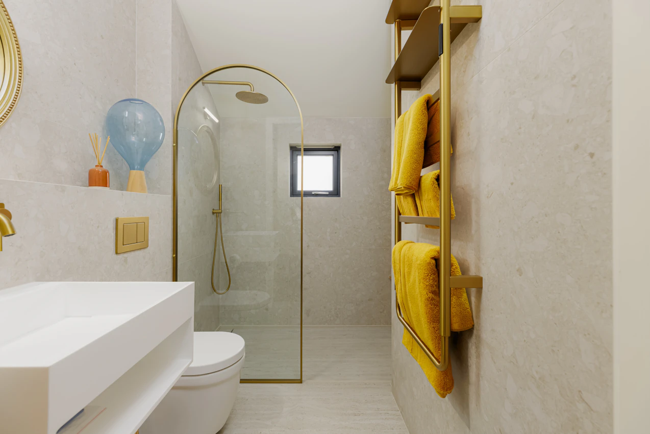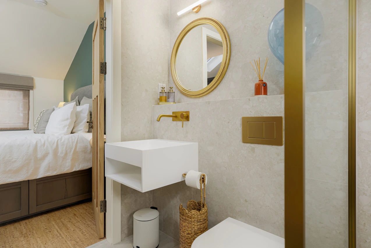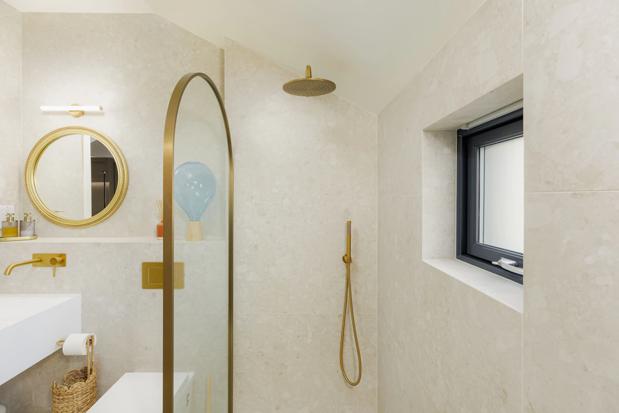 A sublime bathroom within a listed mews property in Glasgow, showcasing the highest quality of materials and workmanship. The eye is drawn to the attention to detail in every direction.