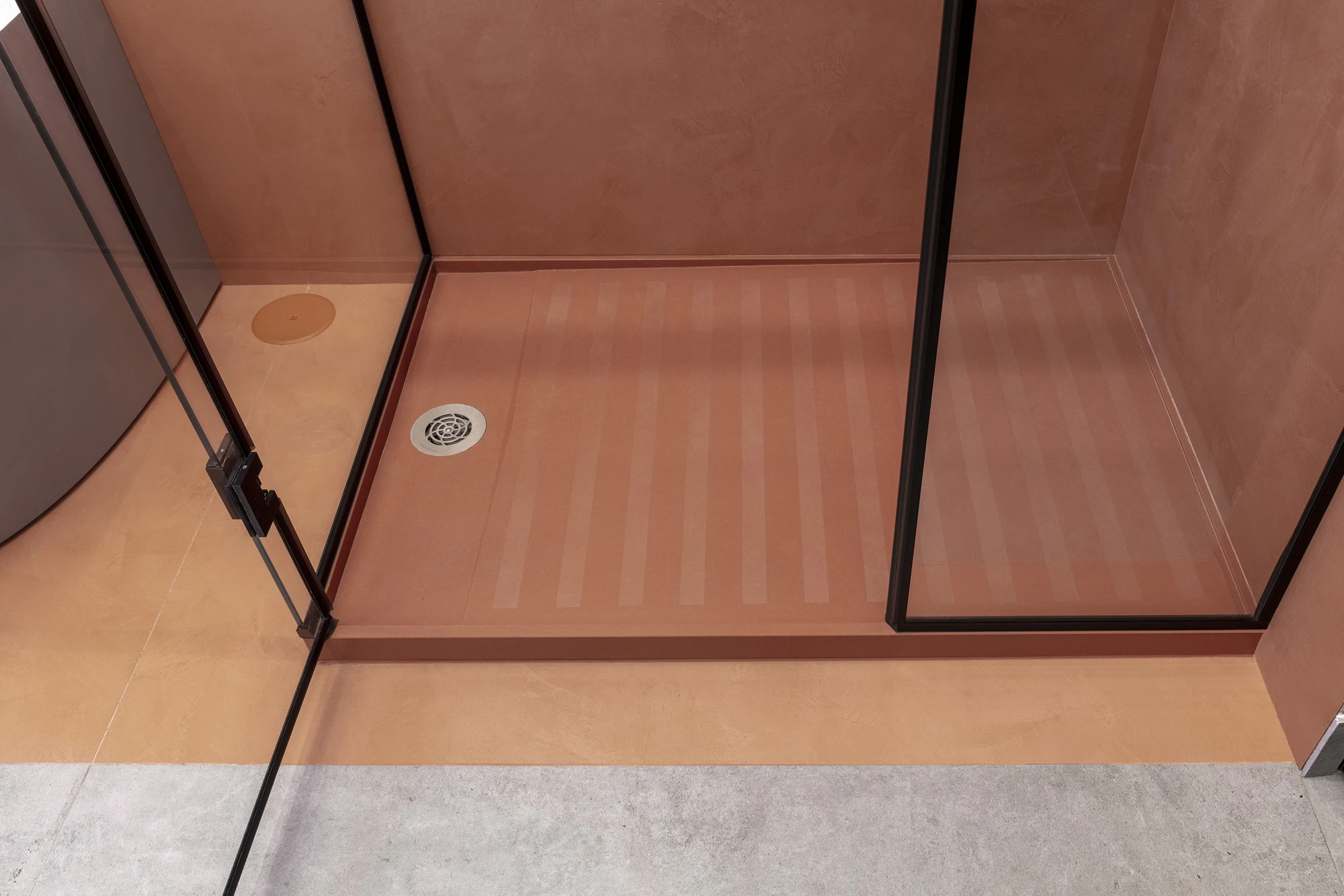 Durante el proceso de diseño se valoraron otras alternativas, como el uso de microcemento industrial para pavimentos y superficies verticales. Sin embargo, esta opción fue descartada por cuestiones de mantenimiento y durabilidad. Dekton permitía alcanzar el mismo efecto estético, pero con un comportamiento técnico muy superior y sin riesgo.