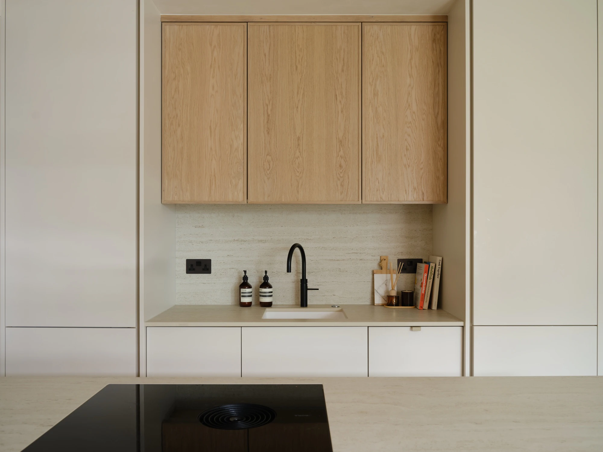 La renovación se desarrolla en un apartamento residencial en Battersea, Londres, con el objetivo de “transmitir una refinada sensación de vida moderna mediante materiales cohesivos y superficies de alto rendimiento. Se priorizó la calma, la continuidad y la durabilidad, combinando suaves tonos minerales con contrastes arquitectónicos más oscuros para definir cada espacio sin excesos visuales”.