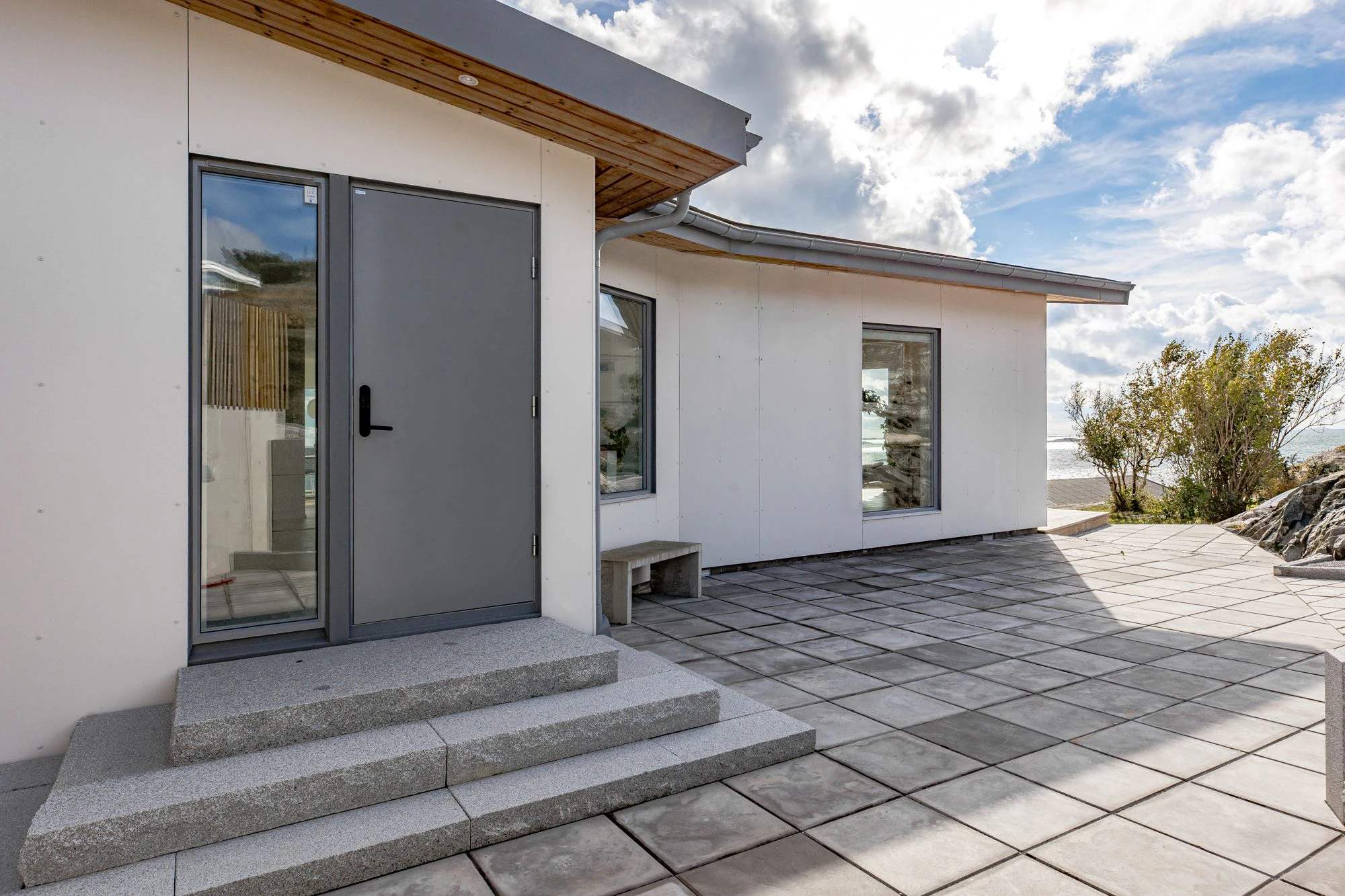 Uno de los elementos clave del proyecto es la fachada, resuelta con la superficie ultracompacta Dektonen el color Zenith. La elección del material estuvo directamente vinculada a las condiciones extremas del entorno. “Necesitábamos un material que pudiera resistir el duro ambiente marino, además del viento, la humedad y el salitre”, explica Jonas Ekman.