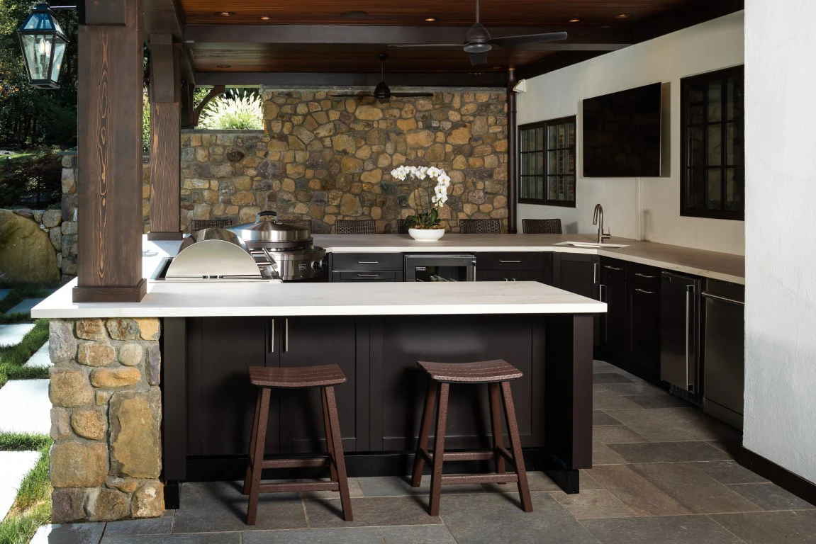 La cocina exterior funciona cuando está donde tiene sentido: cerca del comedor exterior y con acceso razonable a la cocina interior. Si cada trayecto es un paseo de ida y vuelta, la experiencia se rompe.