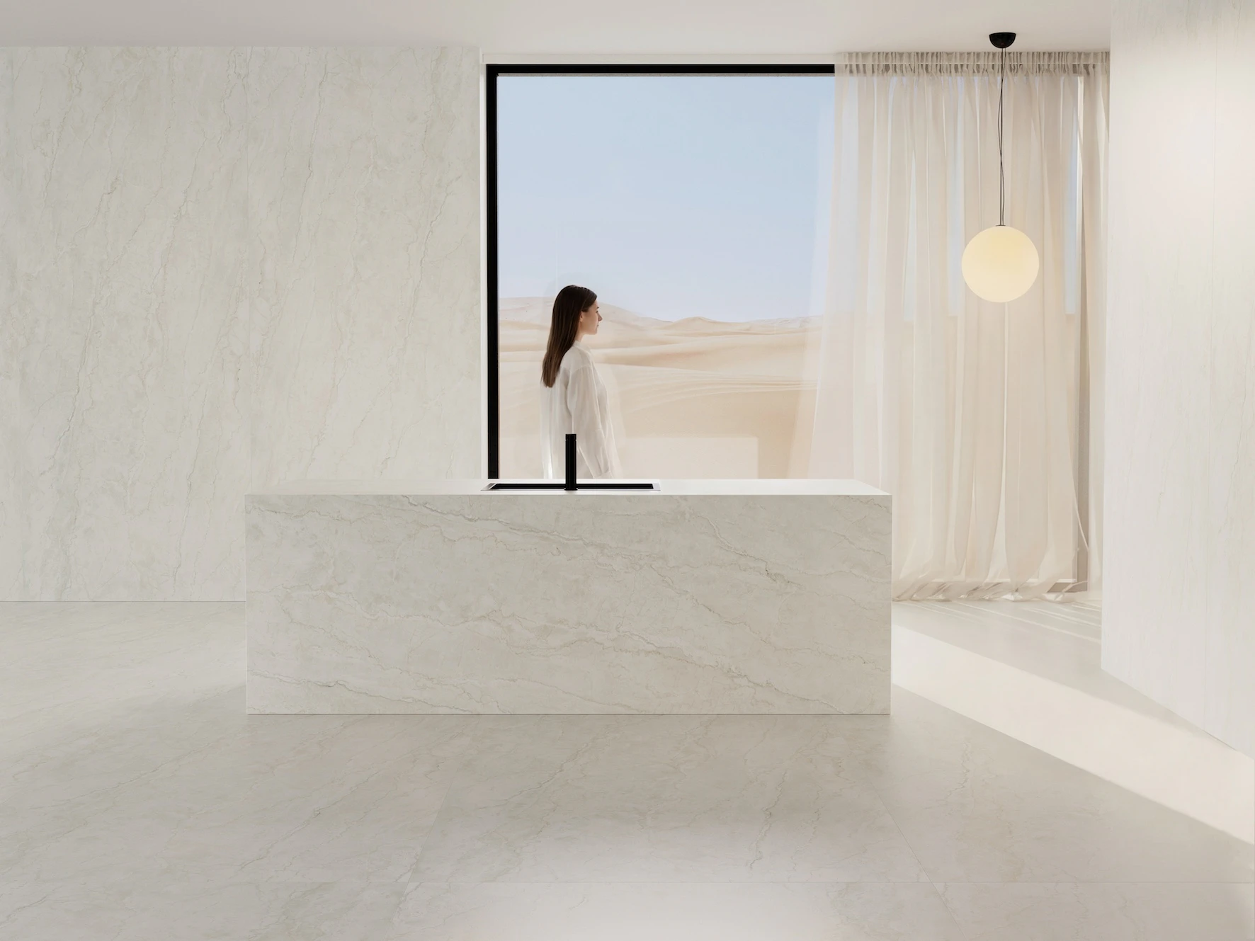 Por eso, en este tipo de proyectos se valora tanto una superficie capaz de comportarse con solvencia en el exterior. Dekton, nuestra superficie ultracompacta, se utiliza precisamente por esa lógica: permite resolver encimeras, frentes, solería, barras y muebles a medida con un lenguaje continuo, y su resistencia facilita que la cocina exterior sea un espacio de uso real, no un decorado.