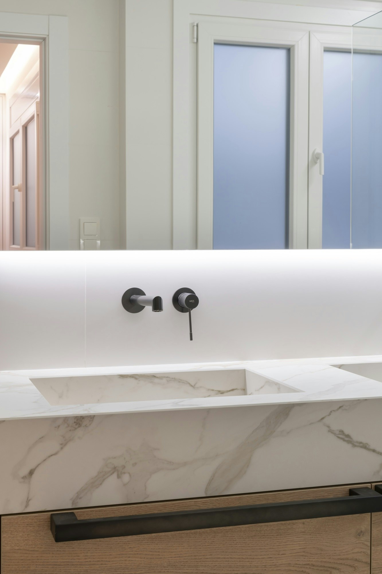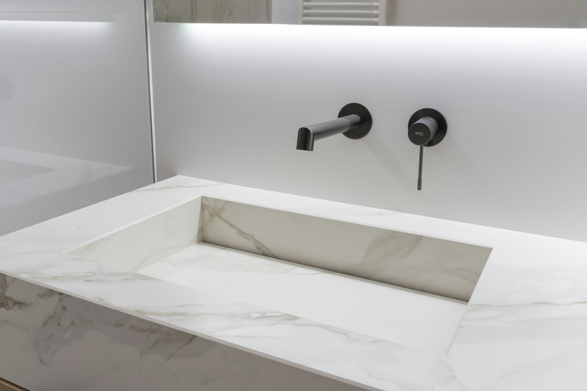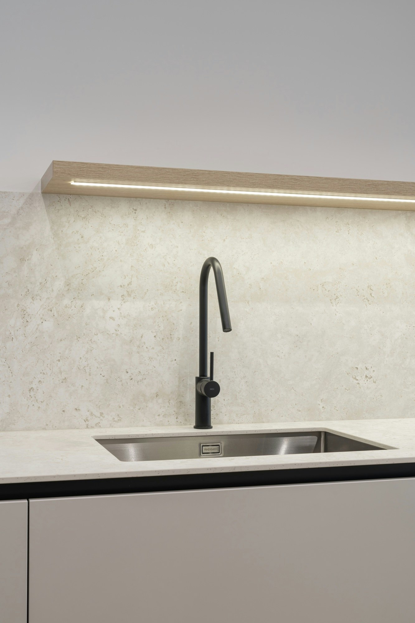 Se trata de “una reinterpretación contemporánea de esta piedra noble, Travertino, utilizada desde la época romana”, apunta Lleó. Además de su belleza, la superficie garantiza “altos estándares de sanidad, higiene y durabilidad, con un mantenimiento sencillo y una estética perdurable en el tiempo”.