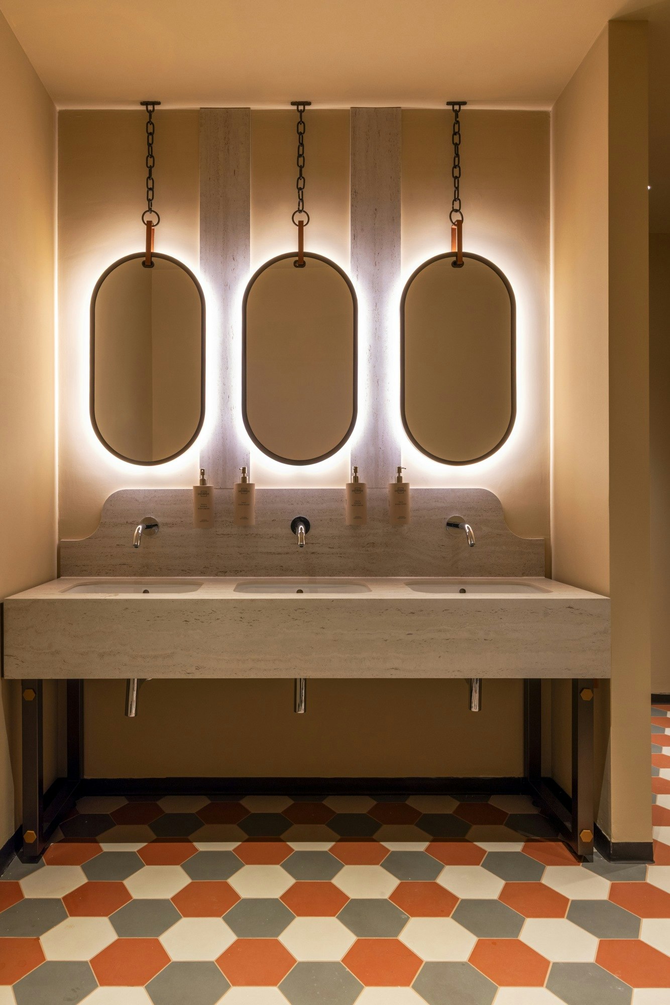 “En el plano decorativo, reinterpretamos el alma de las antiguas cuadras y el estilo art nouveau milanés integrando elementos inspirados en el mundo ecuestre, como estribos y bridas, así como materiales evocadores, como cuero, hierro pavonado, vidrieras y superficies naturales. Las geometrías sinuosas y los detalles artesanales remiten a la estética de principios del siglo XX, mientras que la composición de los espacios guía a los visitantes en un viaje sensorial y experiencial que culmina en el encuentro con el agua termal”, continúan los responsables del trabajo.
