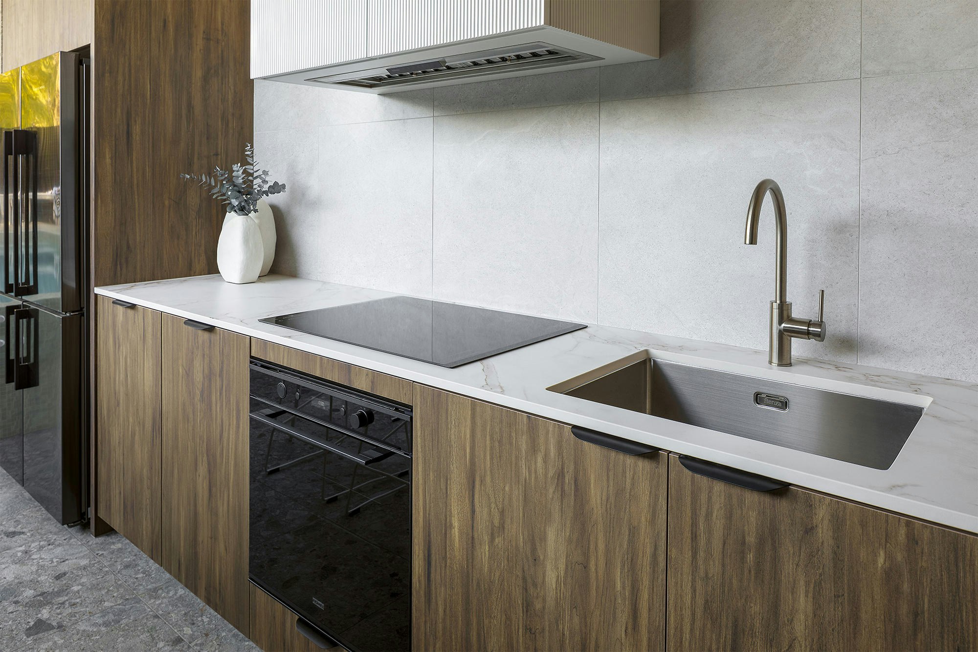 La elección de Dekton por parte de Transform WA no fue solo por su atractivo estético, sino también por sus excepcionales propiedades técnicas. Dekton es altamente resistente al calor, lo que lo convierte en la elección ideal para la cocina, permitiendo colocar ollas calientes directamente sobre la superficie sin riesgo de daño. Además, su resistencia a los arañazos y las manchas, junto con su bajo mantenimiento, lo hacen perfecto para un hogar que valora tanto la belleza como la funcionalidad.