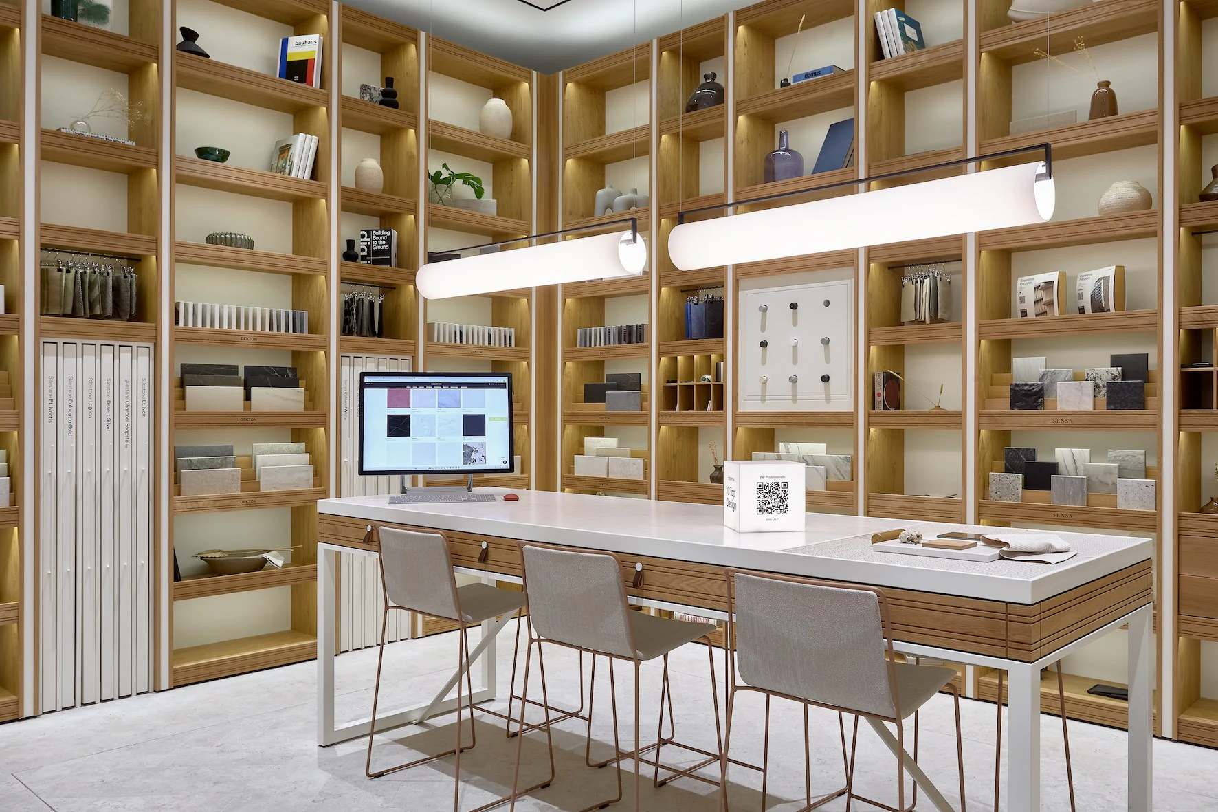 En materiales, destacan propuestas como Trevi de Dekton, que reinterpreta el travertino romano, o Romantic Ash de Silestone Le Chic, que recuerda un cielo estrellado. Superficies que permiten diseñar interiores urbanos, sostenibles y llenos de carácter.