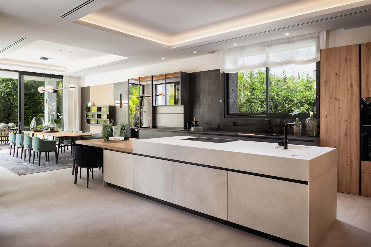 Esta nueva cocina que os traemos presenta un estilo moderno pero contemporáneo con toques cálidos y naturales, donde predominan las líneas limpias, los materiales nobles y una paleta neutra y muy sofisticada. Aquí encontrarás el ejemplo perfecto de cómo se pueden combinar de texturas, colores y modelos todo ello, de la mano de nuestro exclusivo fabricante Arrital. En conjunto, el espacio transmite una sensación de lujo sereno, orden y amplitud, con un equilibrio muy cuidado entre calidez y sobriedad. Es un espacio pensado tanto para cocinar como para convivir, donde la estética y la funcionalidad están perfectamente integradas.