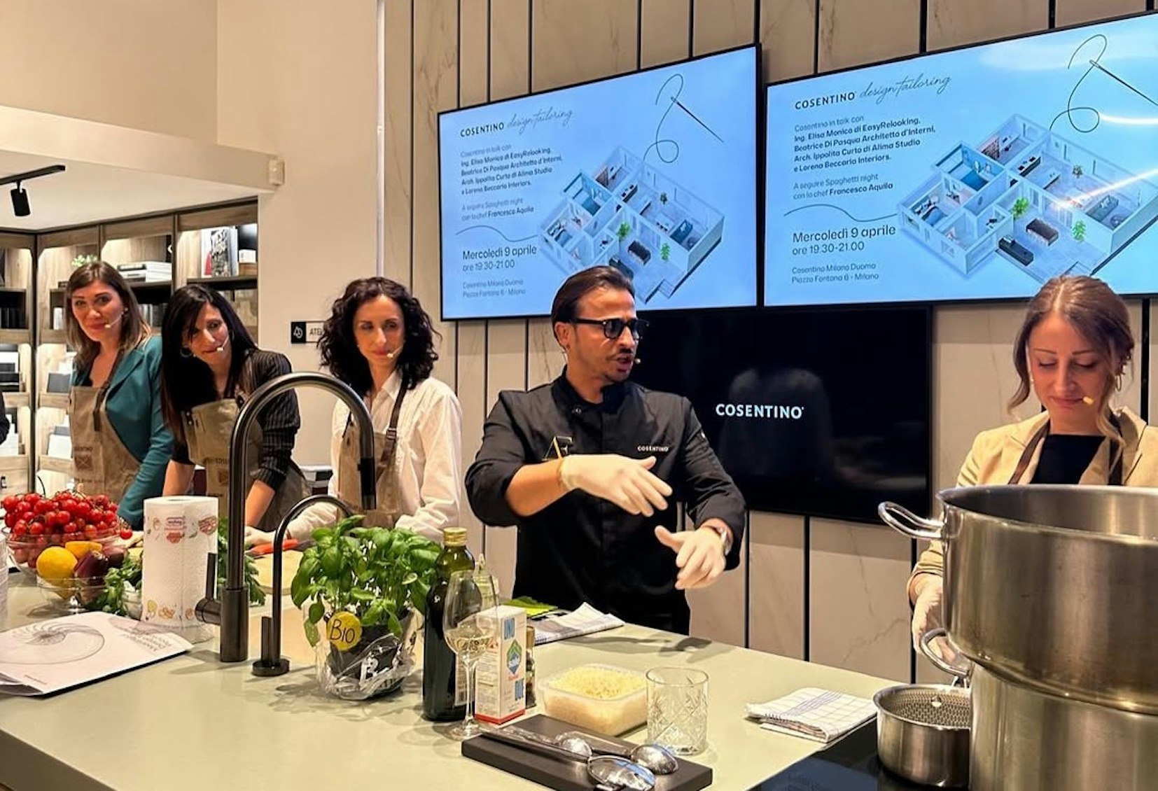 Finalmente, y como en anteriores ediciones, Cosentino City Milano (Piazza Fontana, 6) también acogió diferentes eventos y acciones durante esos días, destacando el showcooking con el chef Franceso Aquila, en colaboración con Dornbracht, o el conversatorio sobre diseño realizado con Elisa Monico (EasyReLooking), Beatrice Di Pasqua (Inside Architettura), Ippolita Curto (Alima Studio), y la interiorista Lorena Beccaria.