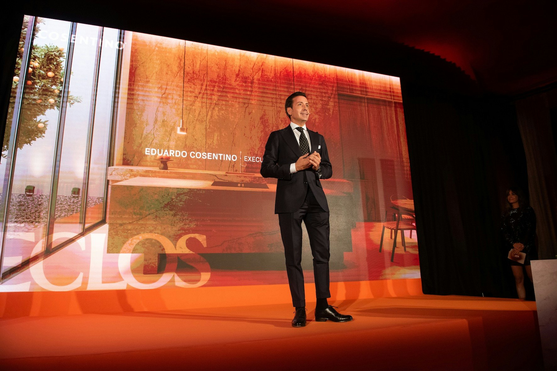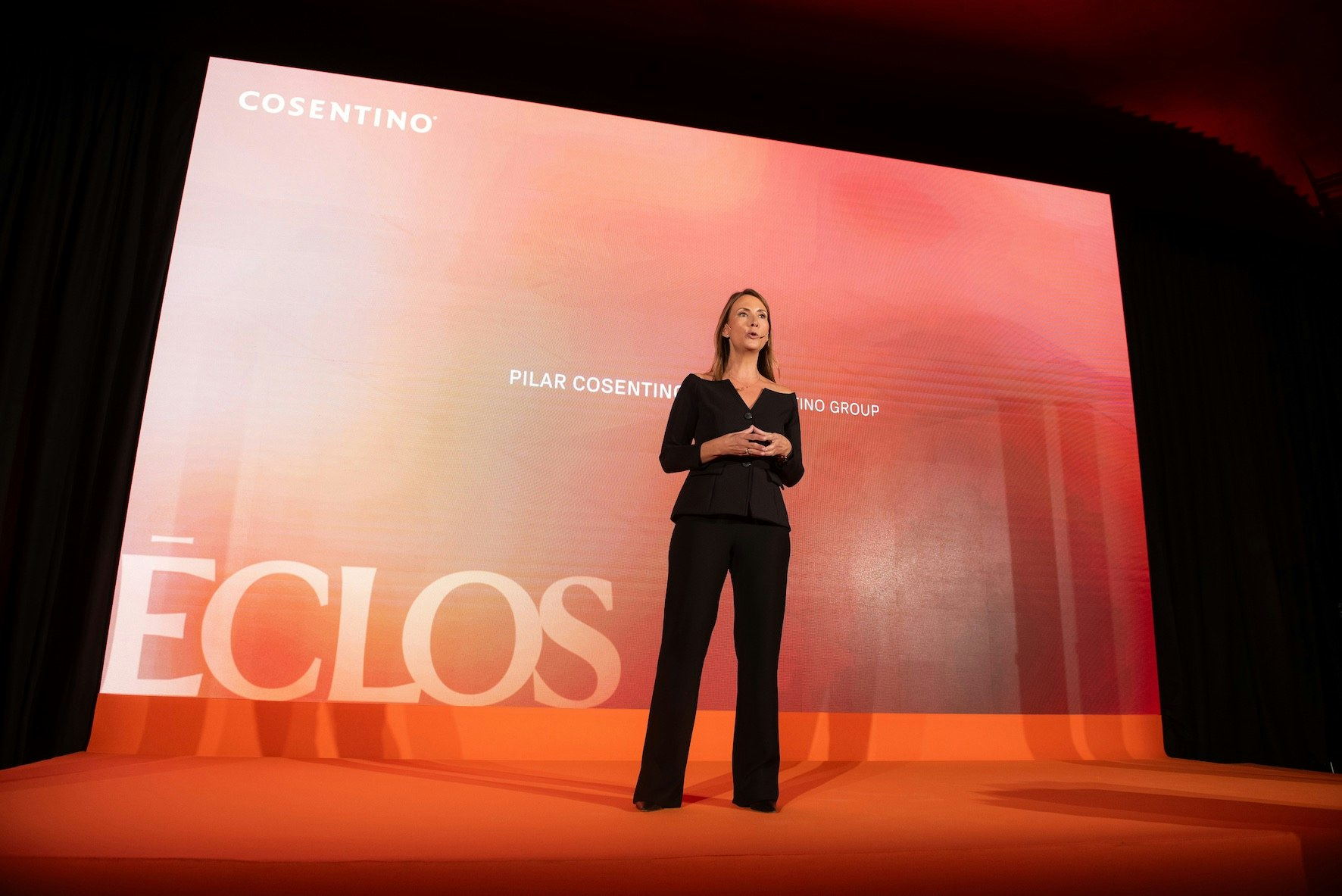 El acto estuvo conducido por la periodista almeriense y presentadora de Informativos Telecinco Isabel Jiménez, y contó con las intervenciones de Pilar Cosentino, CEO de Grupo Cosentino; Eduardo Cosentino, Vicepresidente Ejecutivo y CEO de Cosentino North America; Valentín Tijeras, VP de Innovación y Producto; Damián Granados-Lorca, VP de Marketing de la firma, quienes fueron los encargados de desvelar las claves de Éclos.