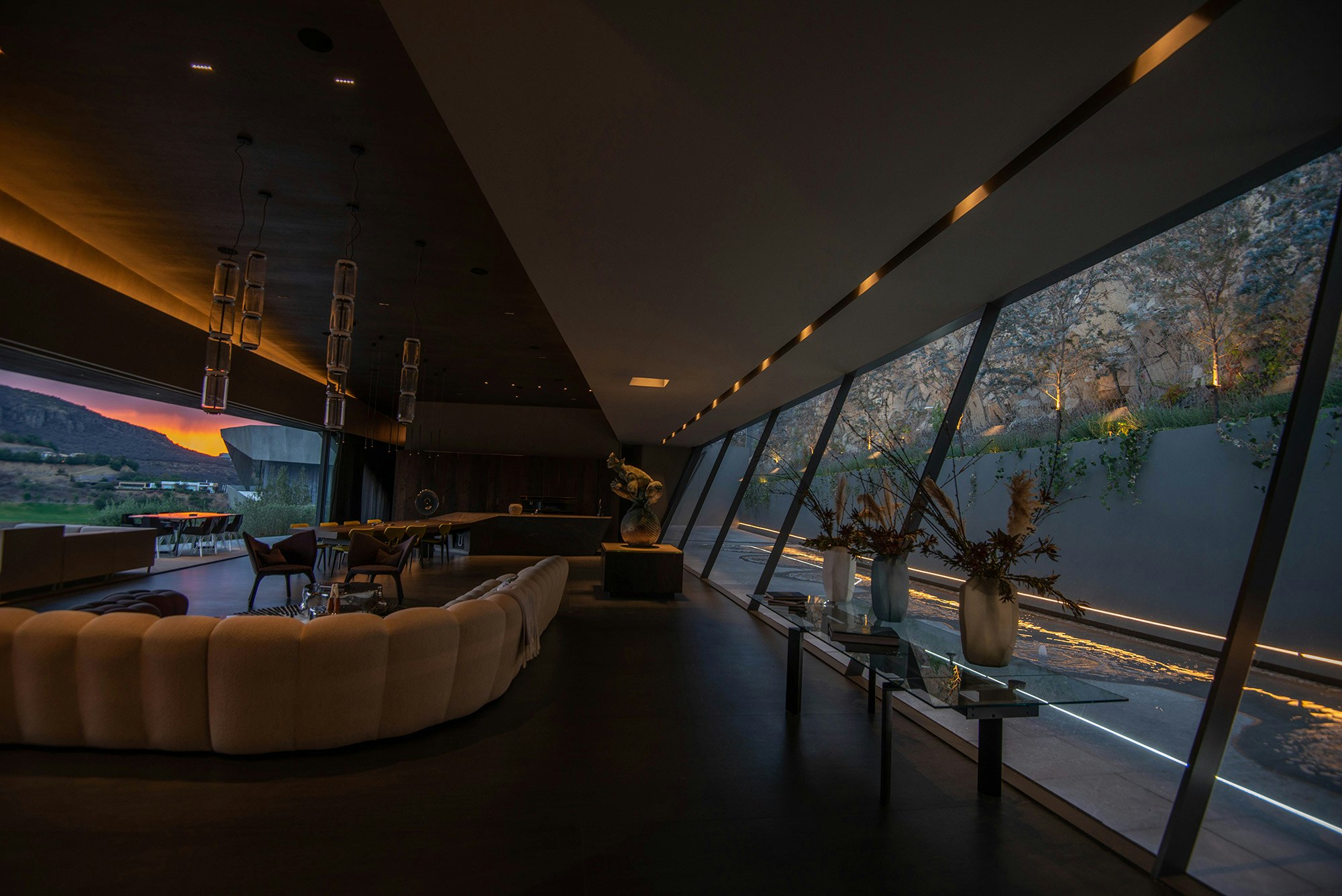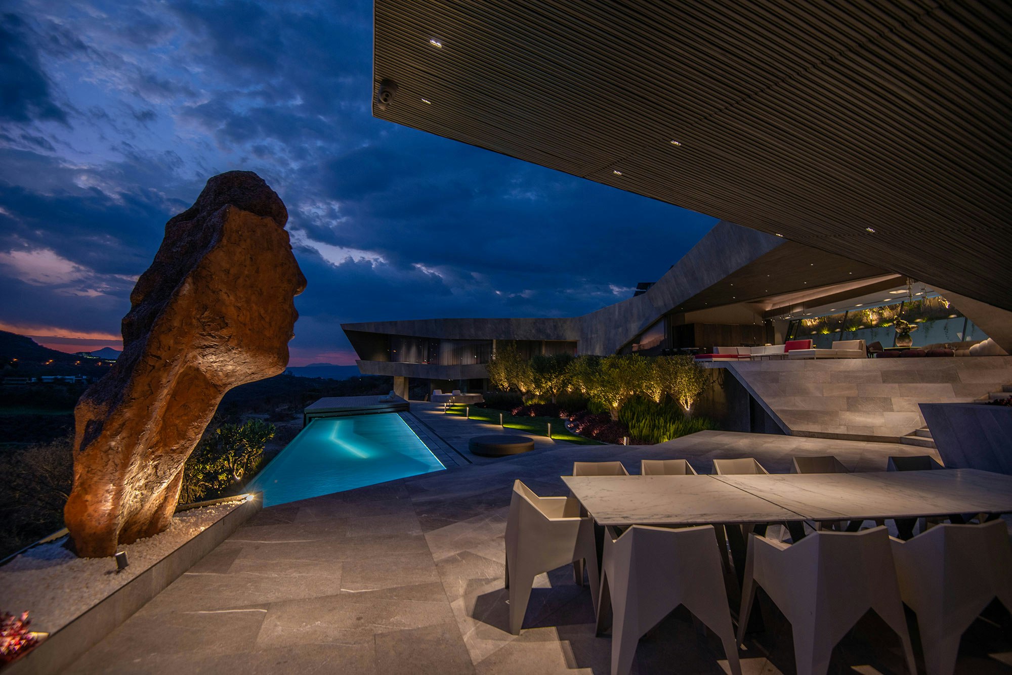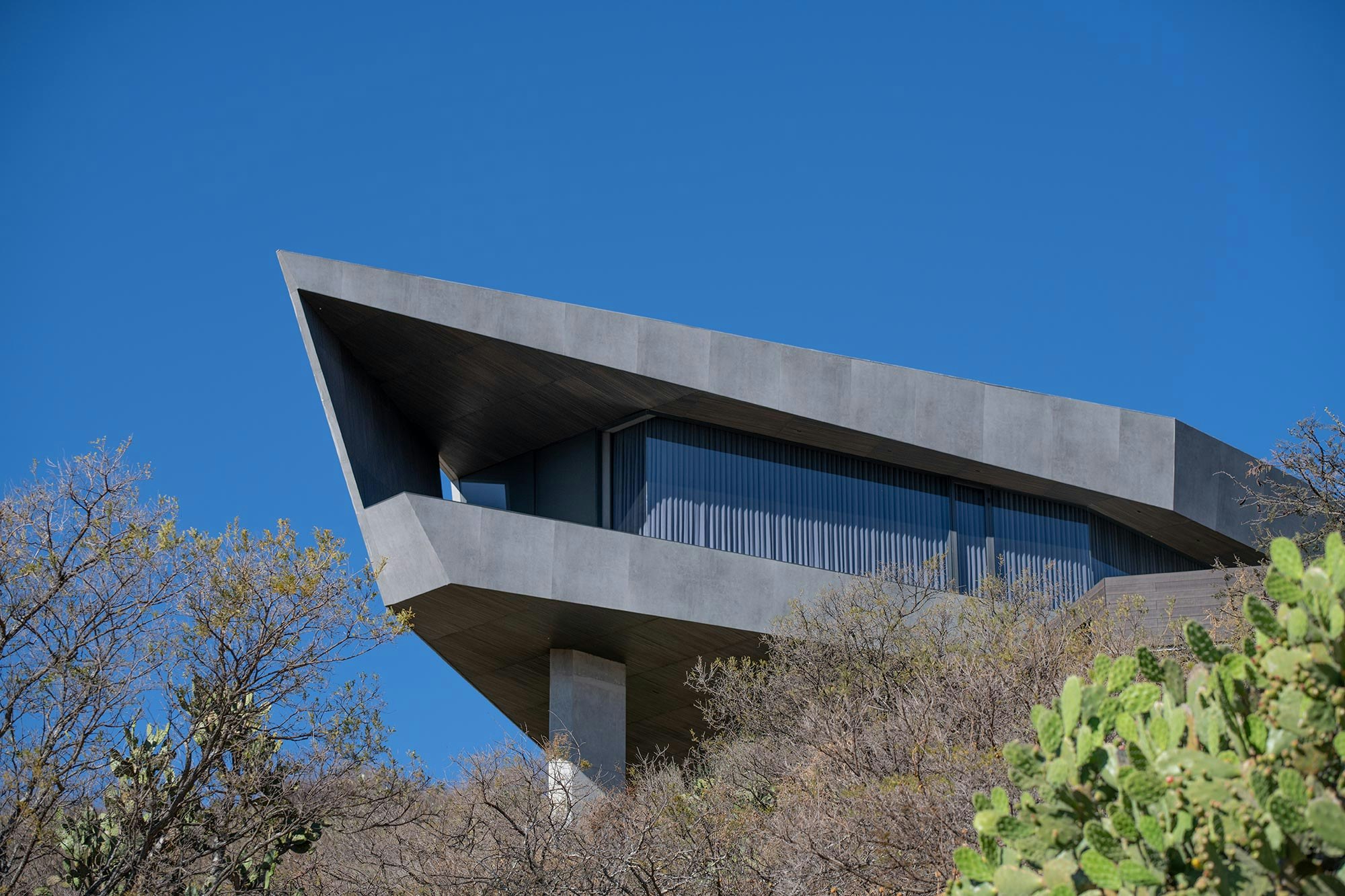 Located in the rich historical region of Morelia, in the state of Michoacán (Mexico), this house defies the laws of gravity by playing with the optical and, above all, the geometric. Its contemporary design, by Enrique Romero from ZET Arquitectos, stands out in its surroundings while establishing a balanced dialogue with the landscape. ‘Integration with the surroundings and the topography provides the basis for generating the forms and spaces,’ explains the architect. ‘The result is a geometry based on vertices that produce seemingly suspended volumes,’ he continues.