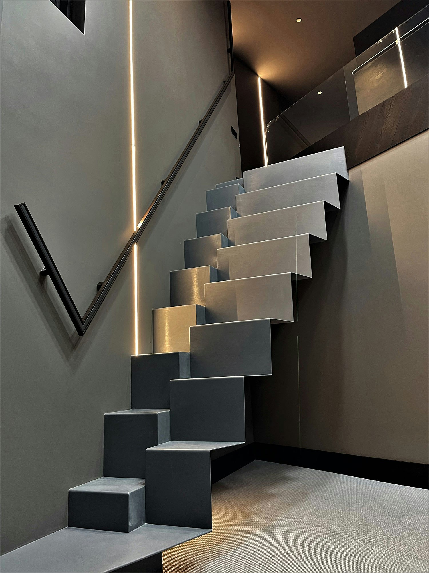 The colour used for the façade adds an industrial touch that brings the building closer to the brutalist style. Kreta is inspired by classic cement floors and its contemporary structure gives it a serene and seamless look.