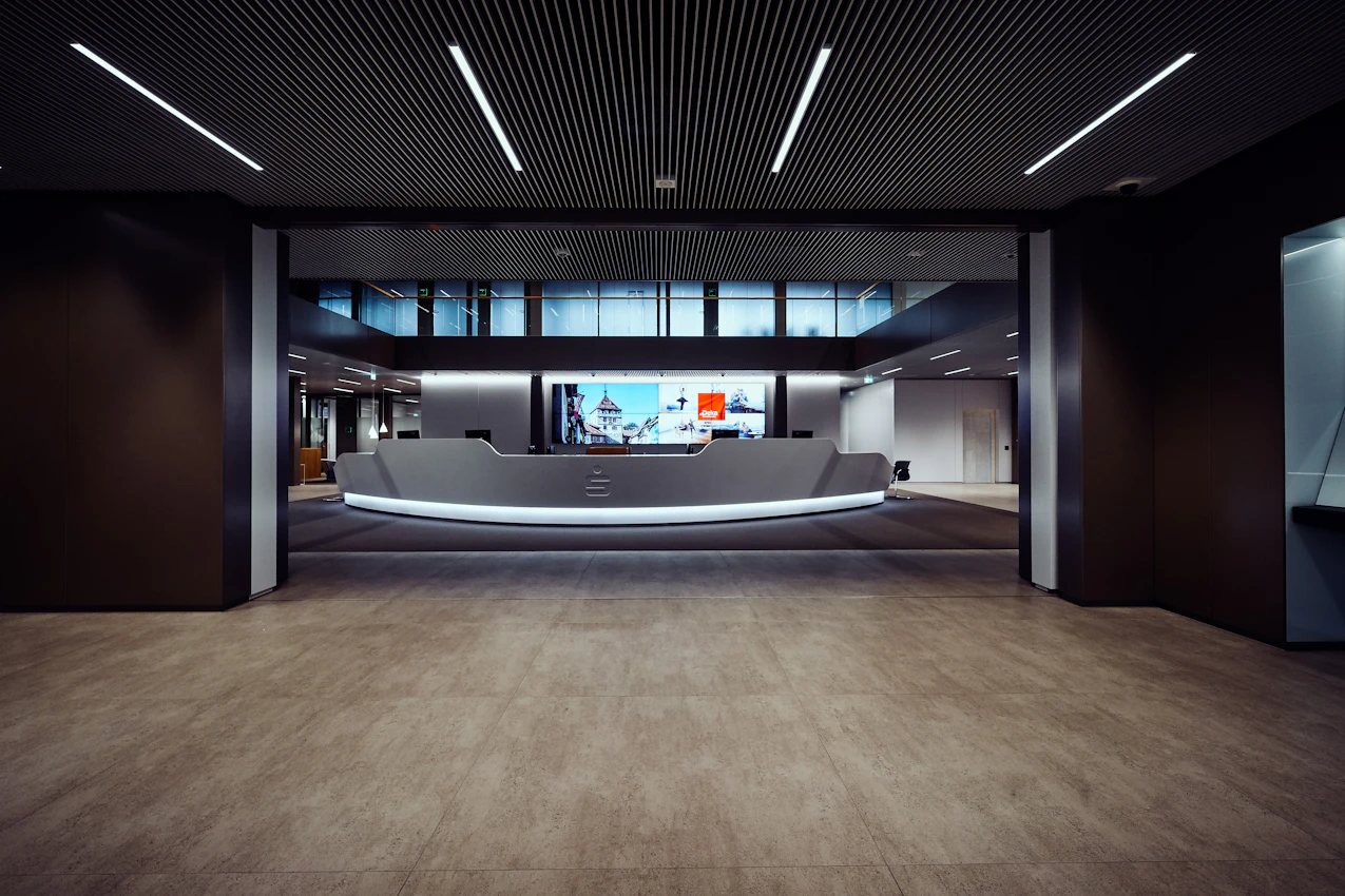 Kreissparkasse: Dekton in large format for the busiest floors.