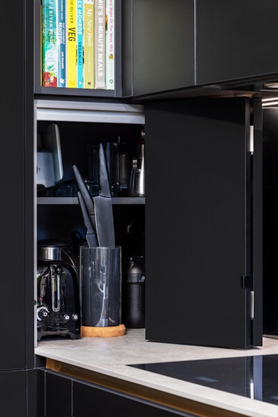 Several interior walls were knocked down to improve the footprint of the kitchen and create a dining area next to the living room. By borrowing space from the old bathroom, we were able to create a larger kitchen and dining area complete with a moveable island bench on castors.