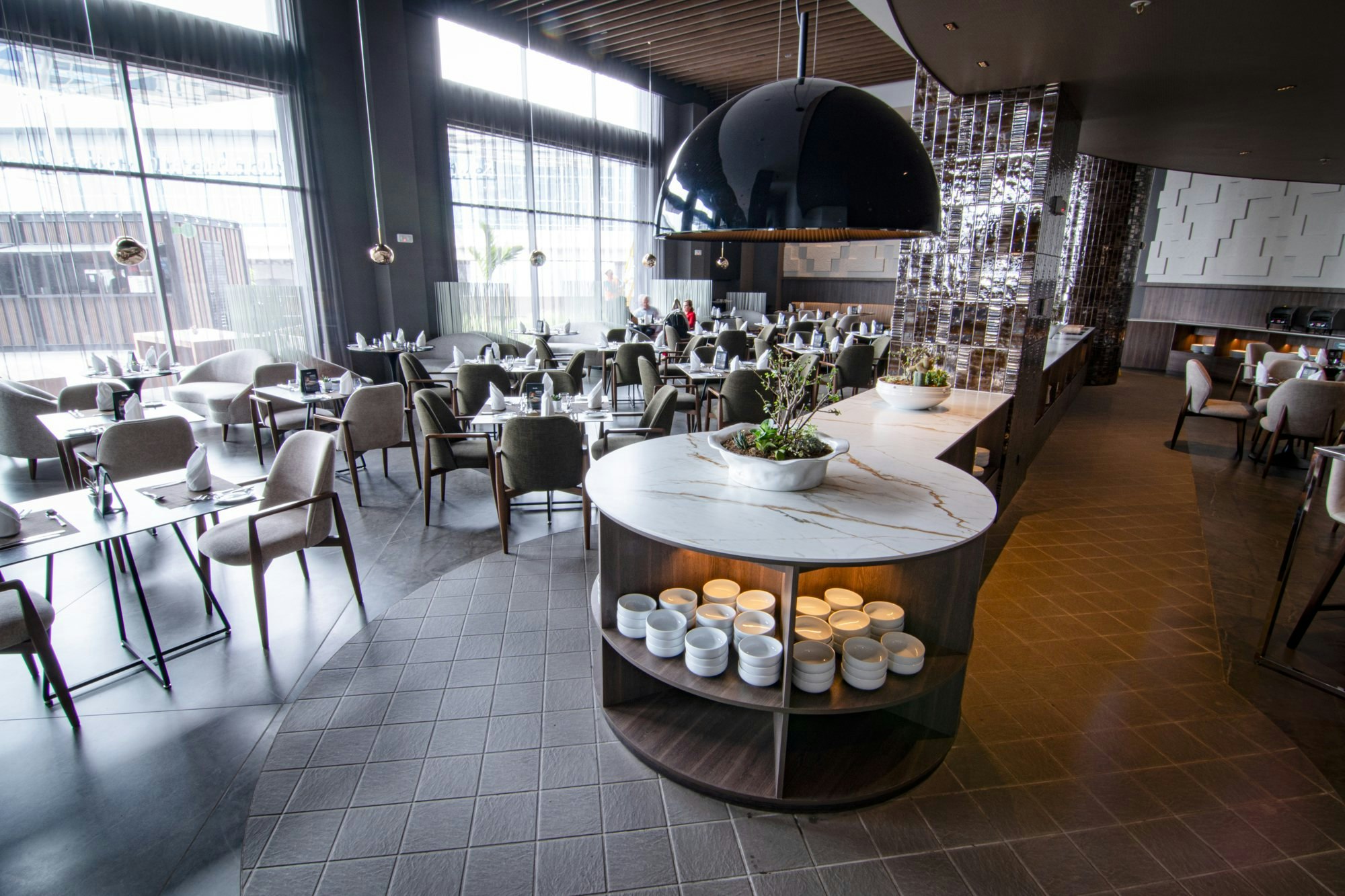 The Wyndham Costa del Sol hotel at Lima Airport (Peru) is a modern four-star establishment offering all the comforts for both transit travellers and those wishing to visit the city. Its contemporary and functional interior design, led by designer Renzo Cordano, includes subtle references to Peruvian identity. Given the high foot traffic in the space, Cordano chose durable and easy-to-maintain materials, relying on Dekton surfaces for various applications.