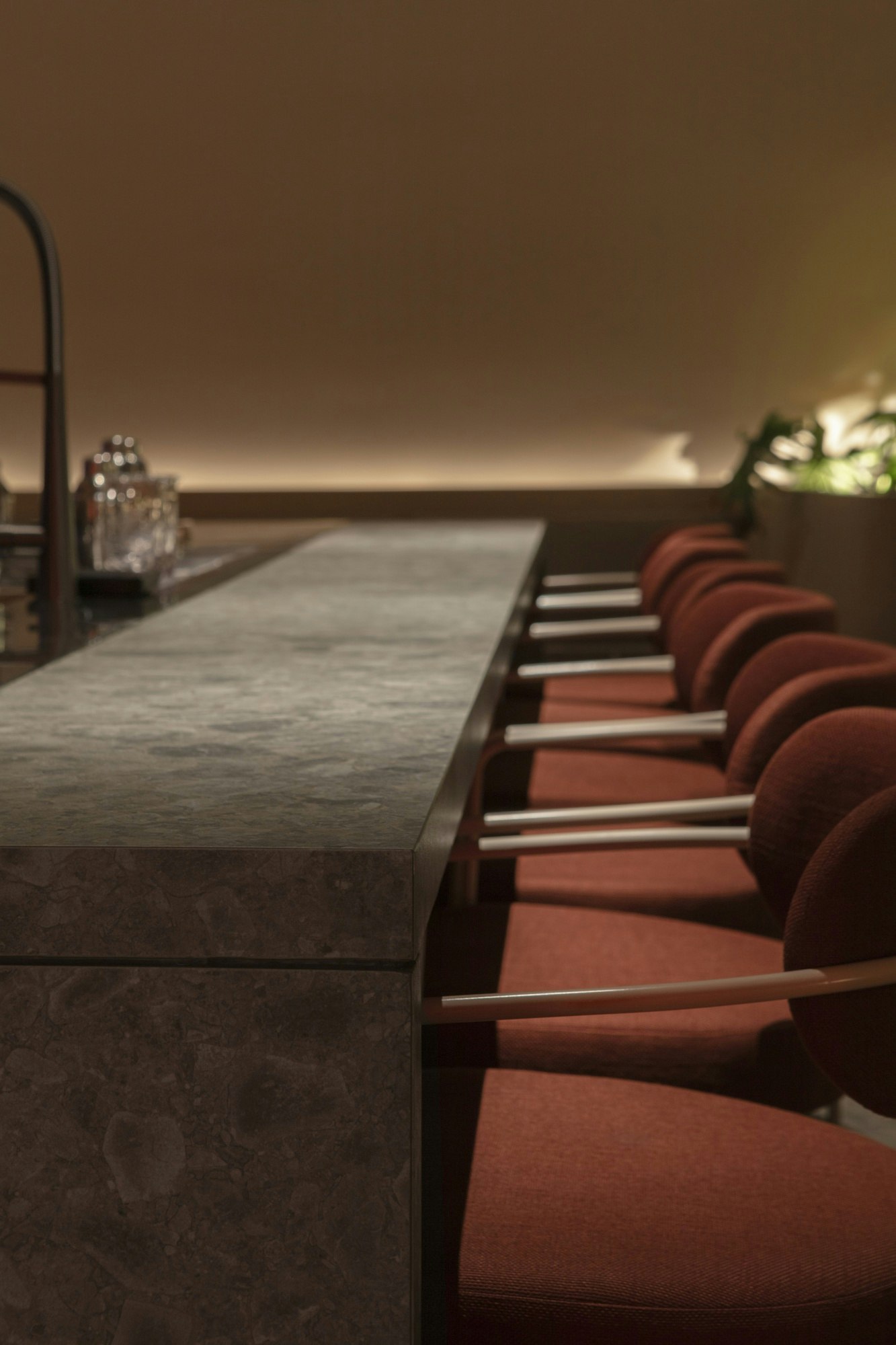 The space avoids the usual bar iconography. No exposed bottles or visible brands: instead, pieces crafted by local artisans are part of the service.