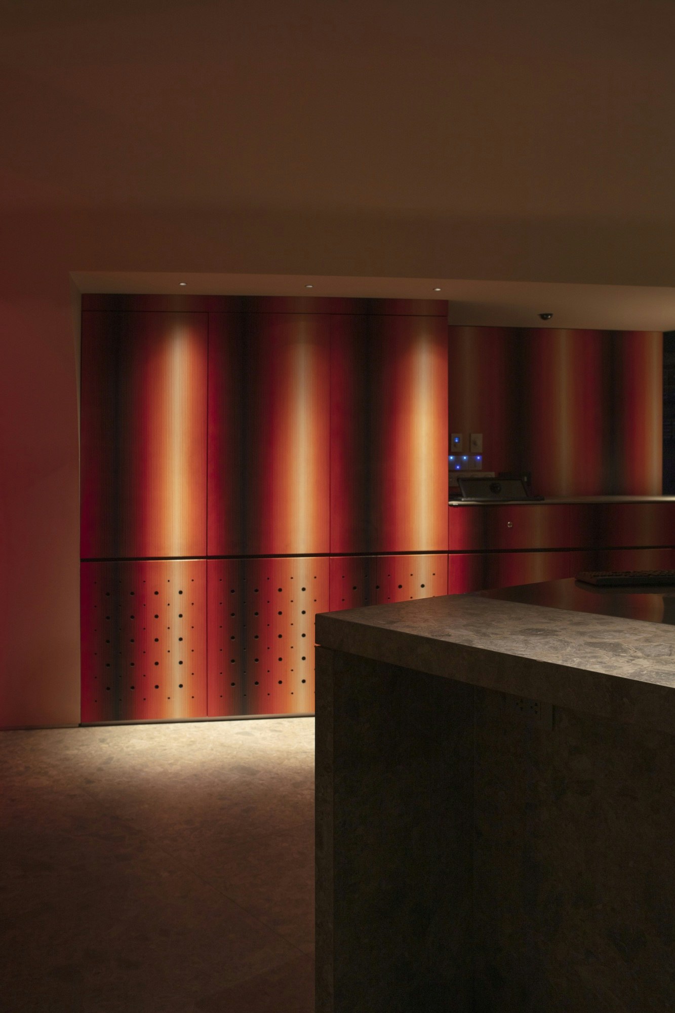 From the client’s perspective, the benefits are clear: “Heat resistance, non-porous surface, cut resistance, and a very balanced combination of colour and texture.” These technical features ensure the design retains its character intact, even in a demanding environment like a high-end cocktail bar.