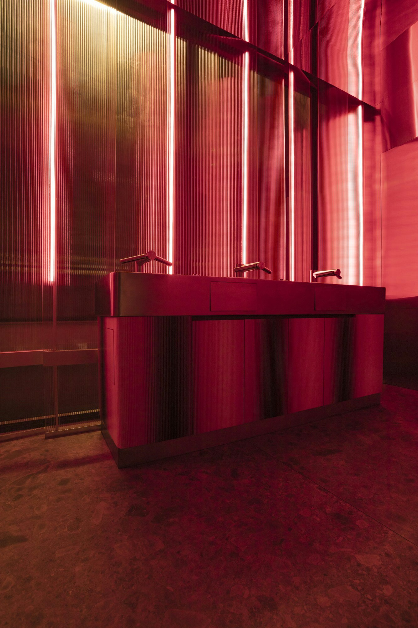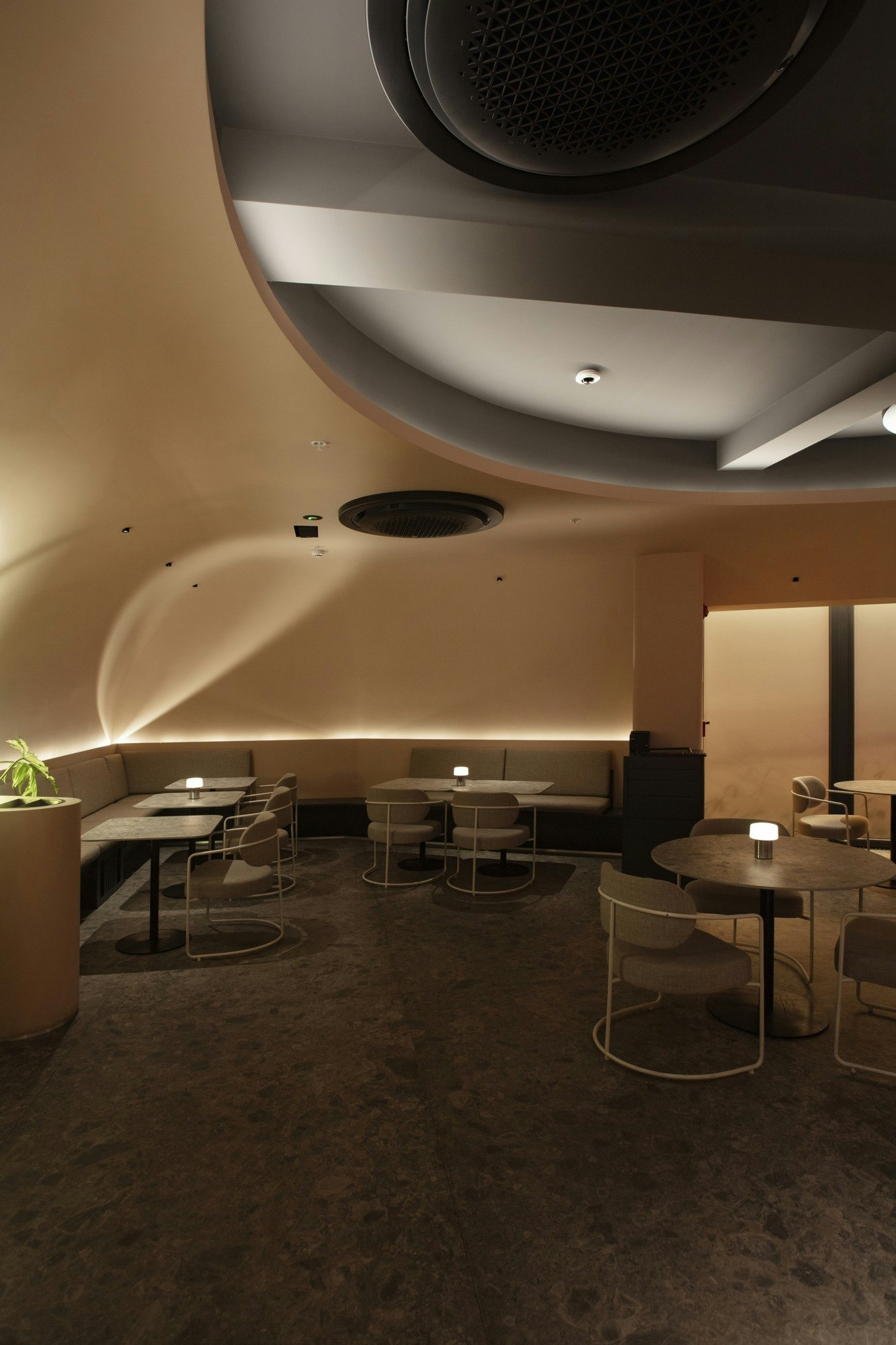 The spatial identity of Lady Bee is clearly supported by a standout material: the ultracompact surface Dekton by Cosentino, chosen in the colour Ceppo. “For this project, without a doubt, the most interesting aspect was the aesthetic provided by the large-format Dekton Ceppo finish in the space,” explains the designer.