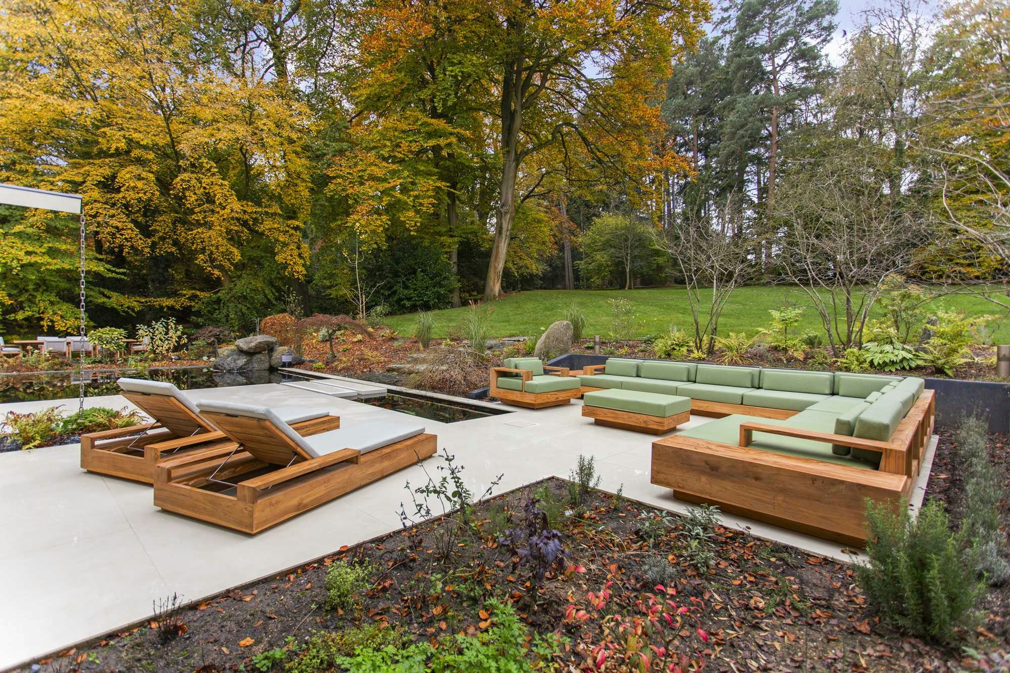 This unique home in Buckinghamshire (United Kingdom) is set on a natural plot of over one hectare, combining beautiful gardens and woodlands. Its outdoor area has now been renovated to further enjoy this privileged setting. For this space, Kaoru Designs envisioned a minimalist yet warm aesthetic, inspired by both Japanese gardening principles and contemporary European architecture. Among the standout materials, the floors clad with Dekton Nacre bring character and functionality.