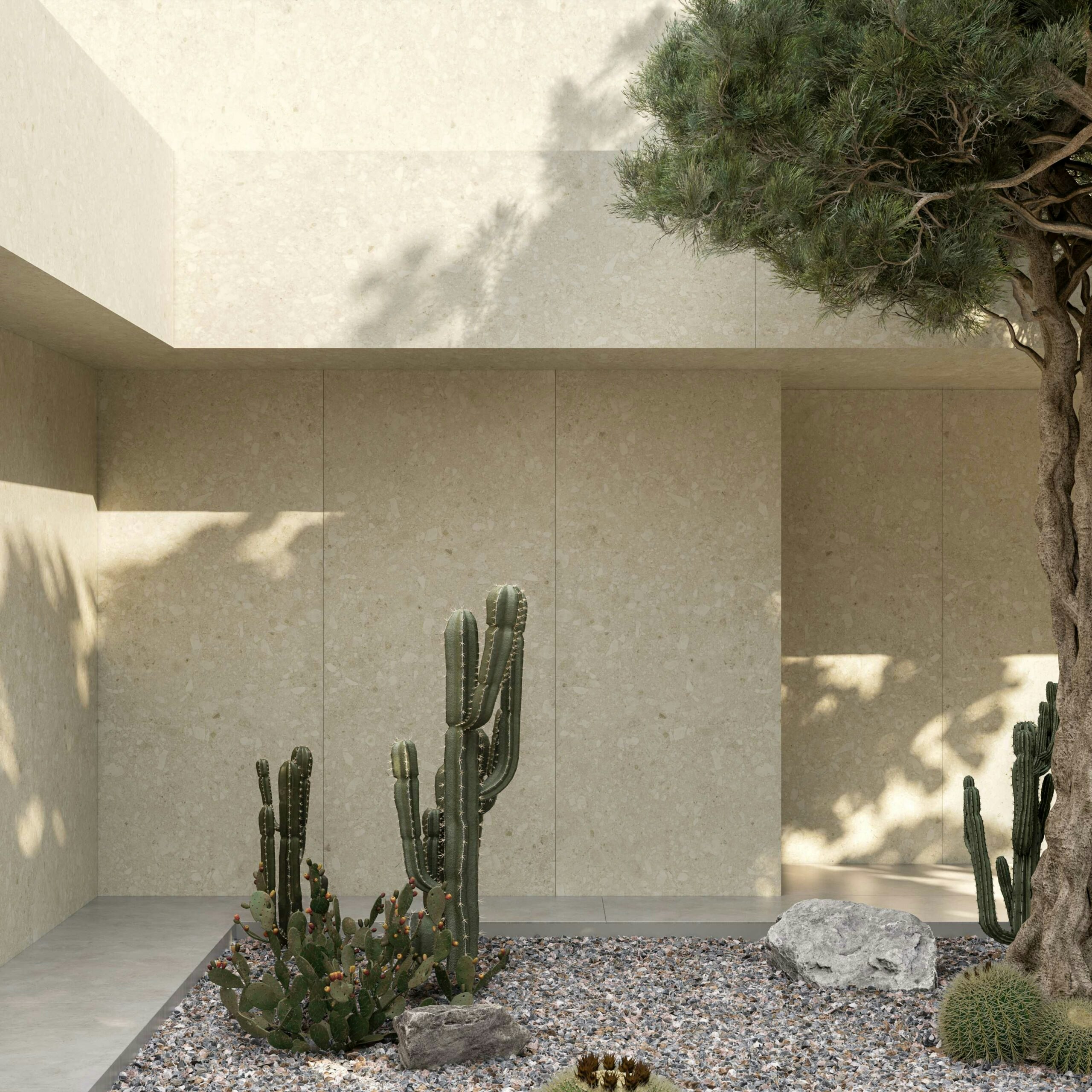 Nous nous sommes inspirés de la structure distinctive et multiforme de la pierre italienne Ceppo di Gré pour créer une finition innovante dans des nuances crème que l’on ne trouve pas dans la nature. Un design plus chaleureux, particulièrement adapté à de vastes surfaces de revêtement de plancher ou de revêtement, à l’intérieur comme à l’extérieur.