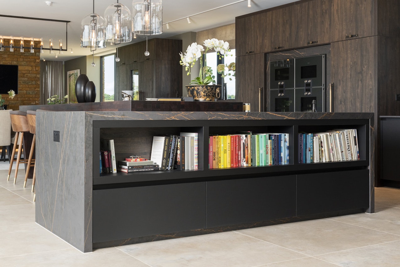 Dekton Laurent, with its stunning marble-like appearance, is both heat and scratch-resistant, making it ideal for a high-traffic area like the kitchen.