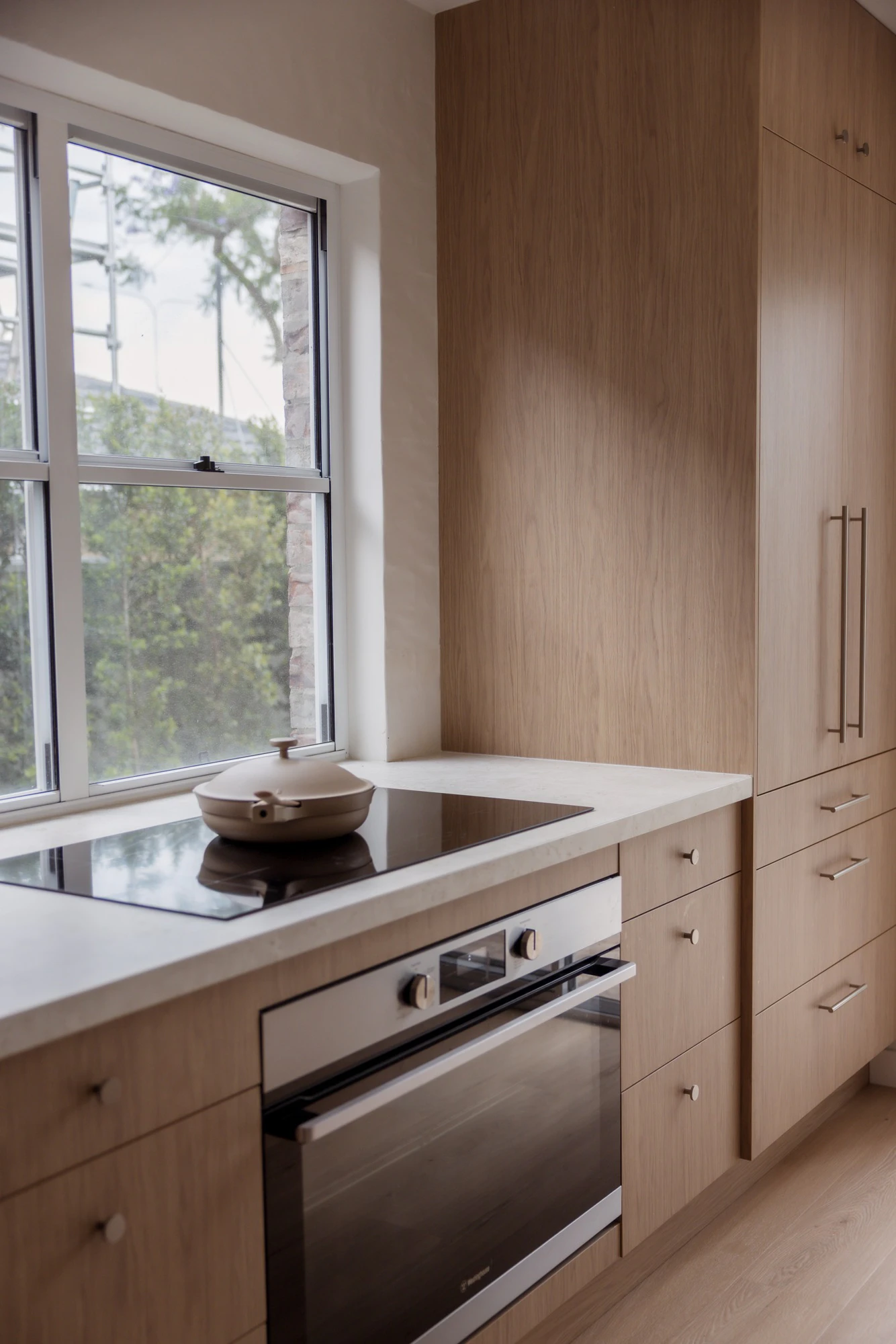 Last but not least, the surface for the laundry area needed to be defined, making it a place where you only worry about doing the laundry and not about the surfaces accompanying the process. That’s why the exquisite whiteness of DKTN Albarium was chosen, an off-white colour inspired by marble dust and Roman stucco, offering a fine texture with subtle light reflections, durable and resistant to scratches, stains, and heat.