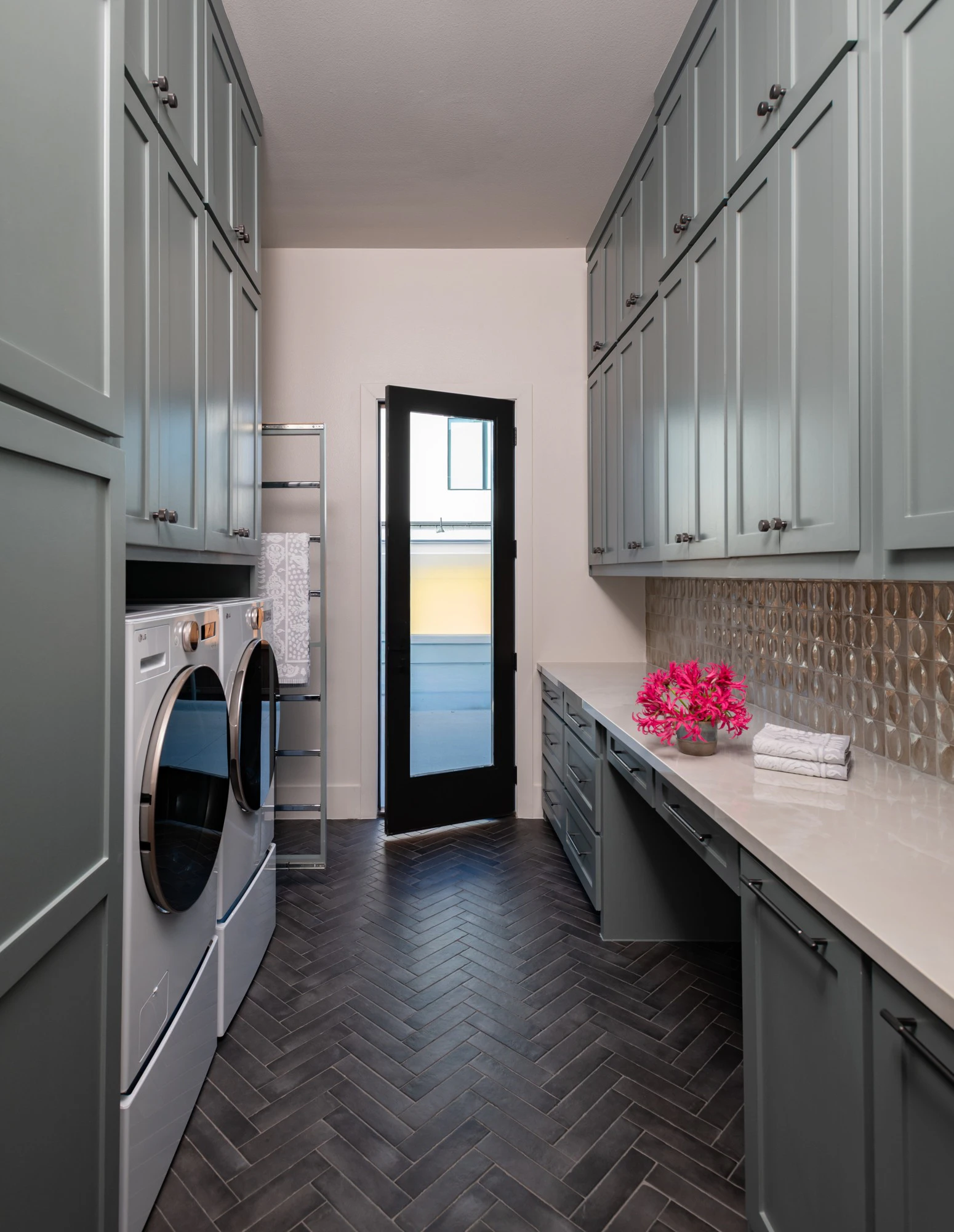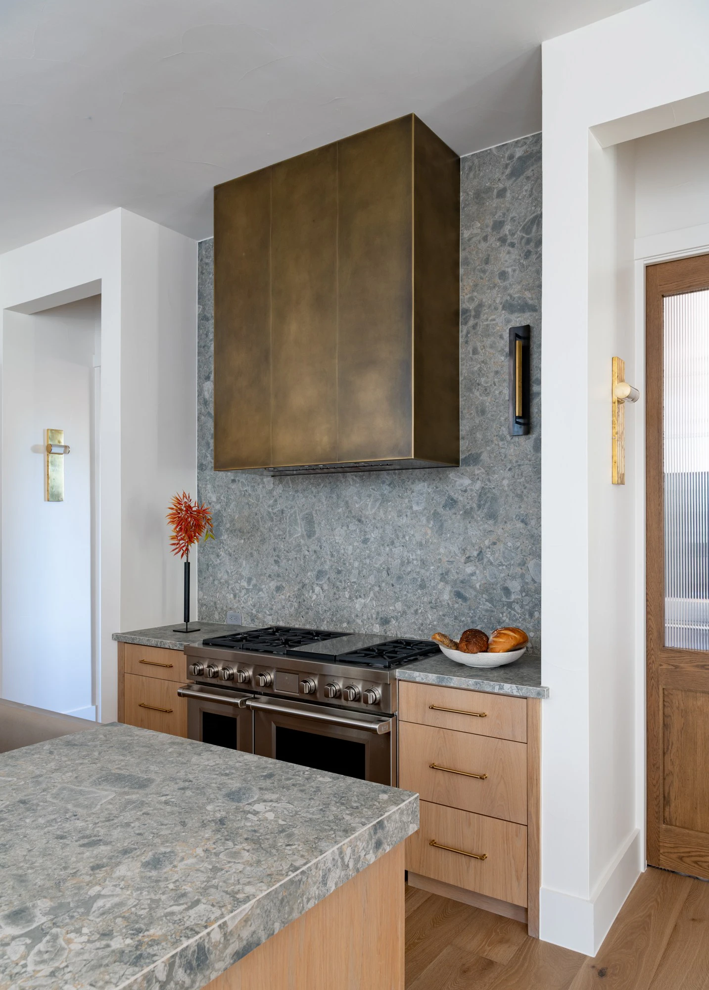 Dekton Laurent is also featured as the countertop in the secondary kitchen, and Silestone Desert Silver in secondary utility spaces. Across every space, the materials deliver durability without compromising the project’s refined aesthetic.