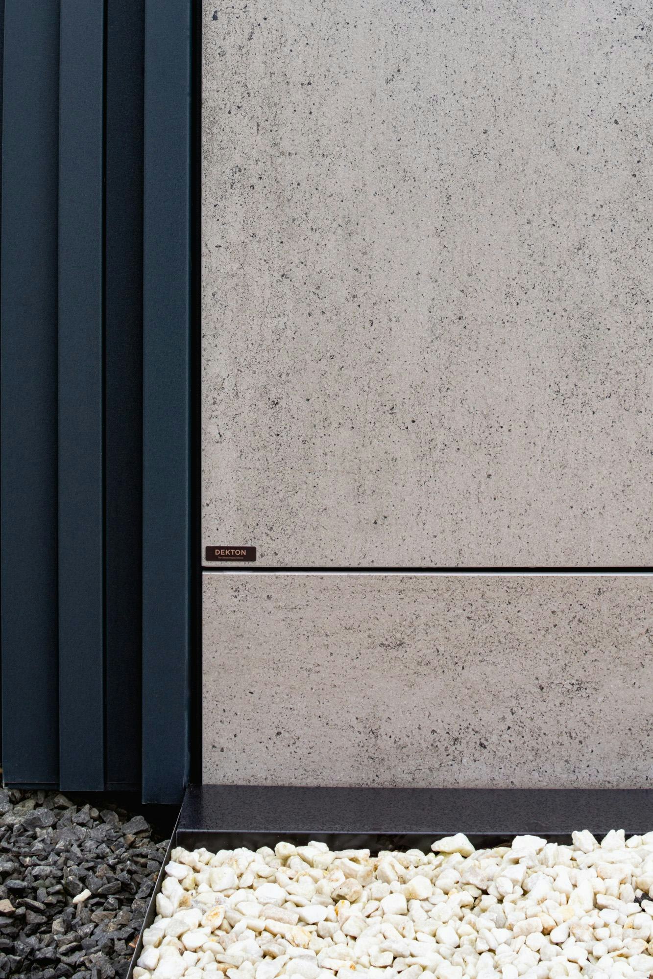 The KES team selected Dekton Keon for the Business X façade due to its modern industrial aesthetic, neutral tone, and design versatility. Ashley shared: “Dekton Keon gave us the contemporary look we wanted: clean, architectural, and premium. It complements the pod’s linear structure and the overall high‑end feel we aim for.”