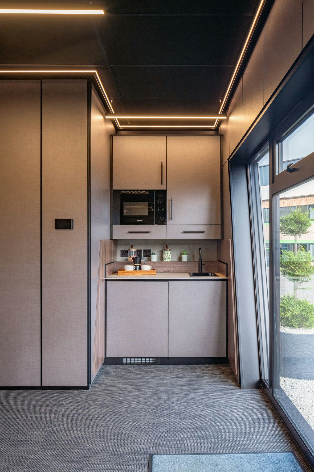 The Business X pod series is designed as a premium modular workspace with architectural detailing, large glazing sections, integrated lighting, and a refined interior approach. Ashley explained: “Everything in Business X is designed to feel intentional and high quality. The exterior sets the tone, which is why the façade material was so important.” Dekton Keon’s texture and finish reinforce the brand’s visual identity: modern, durable, and innovative.