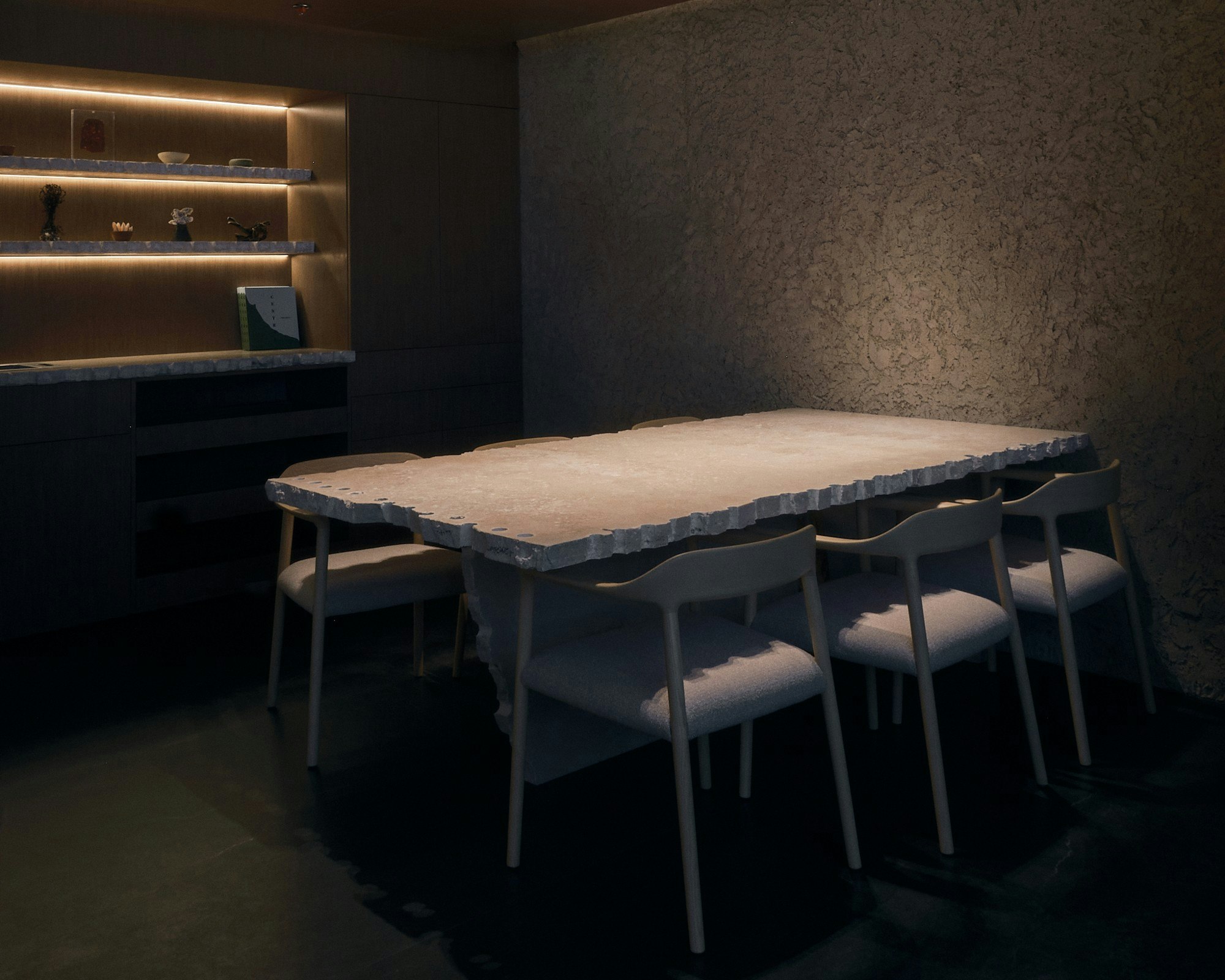 Beyond aesthetics, the technical features of Dekton were also decisive. 'Heat resistance, non-porous, resistant to cuts and impacts,' lists Miranda, who also highlights a key aspect from a visual perspective: 'The formats have a composition that, when joined, does not appear as a repetitive pattern but rather the opposite; for me, this is highly valuable in aesthetic terms.' This absence of obvious repetition allows large surfaces to be perceived almost as continuous stone blocks, reinforcing the concept of natural material.