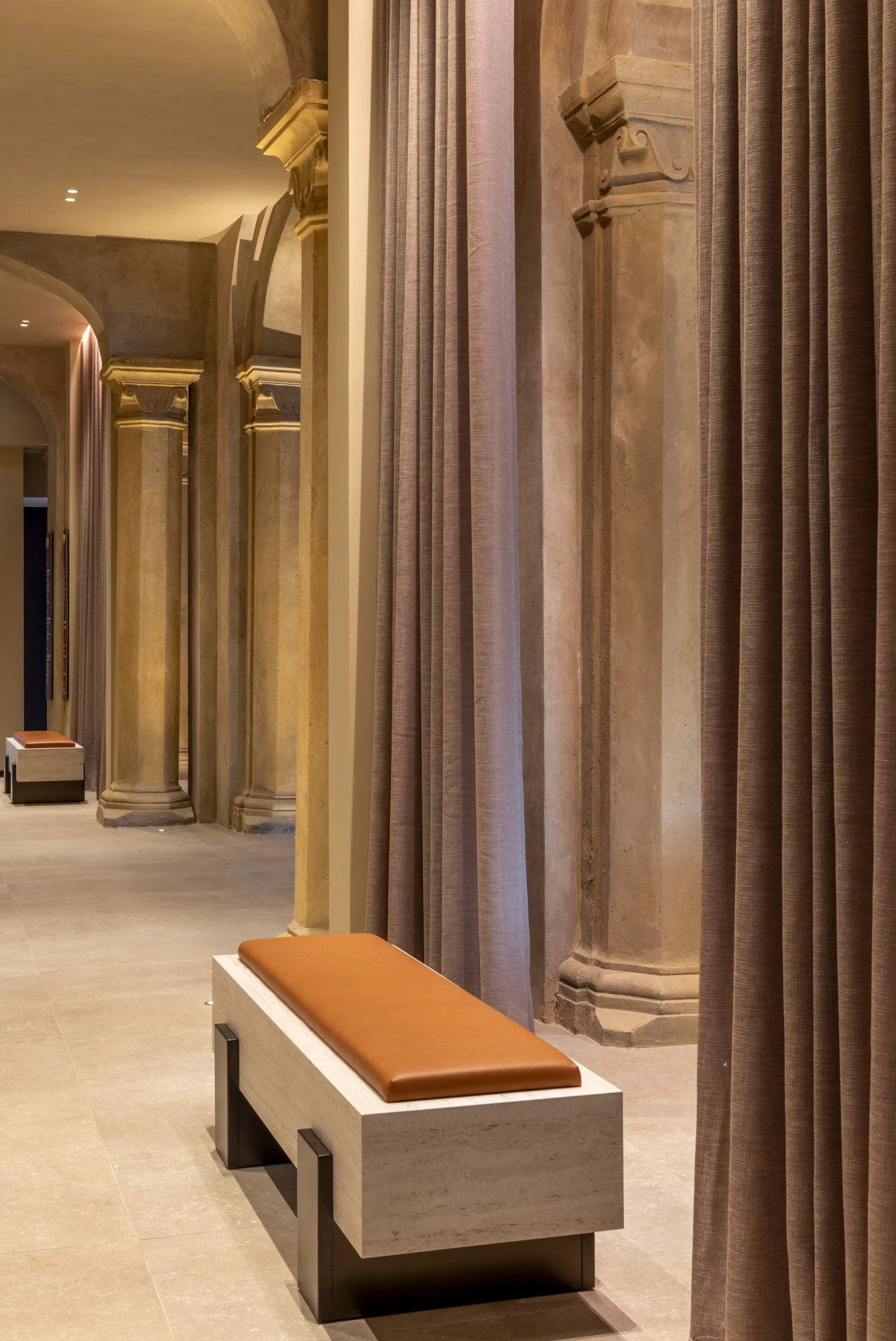 Questo restauro esterno è stato combinato con una struttura interna moderna e sofisticata: “La cosa più affascinante di questo progetto è il dialogo tra memoria e innovazione, tra il glorioso passato delle Scuderie de Montel e il suo nuovo scopo come spa urbana contemporanea. Abbiamo lavorato su un edificio di grande valore storico e simbolico, restaurandone l'identità attraverso un attento restauro filologico e, allo stesso tempo, progettando interni in grado di rispondere alle esigenze del benessere attuale”, raccontano dallo studio.