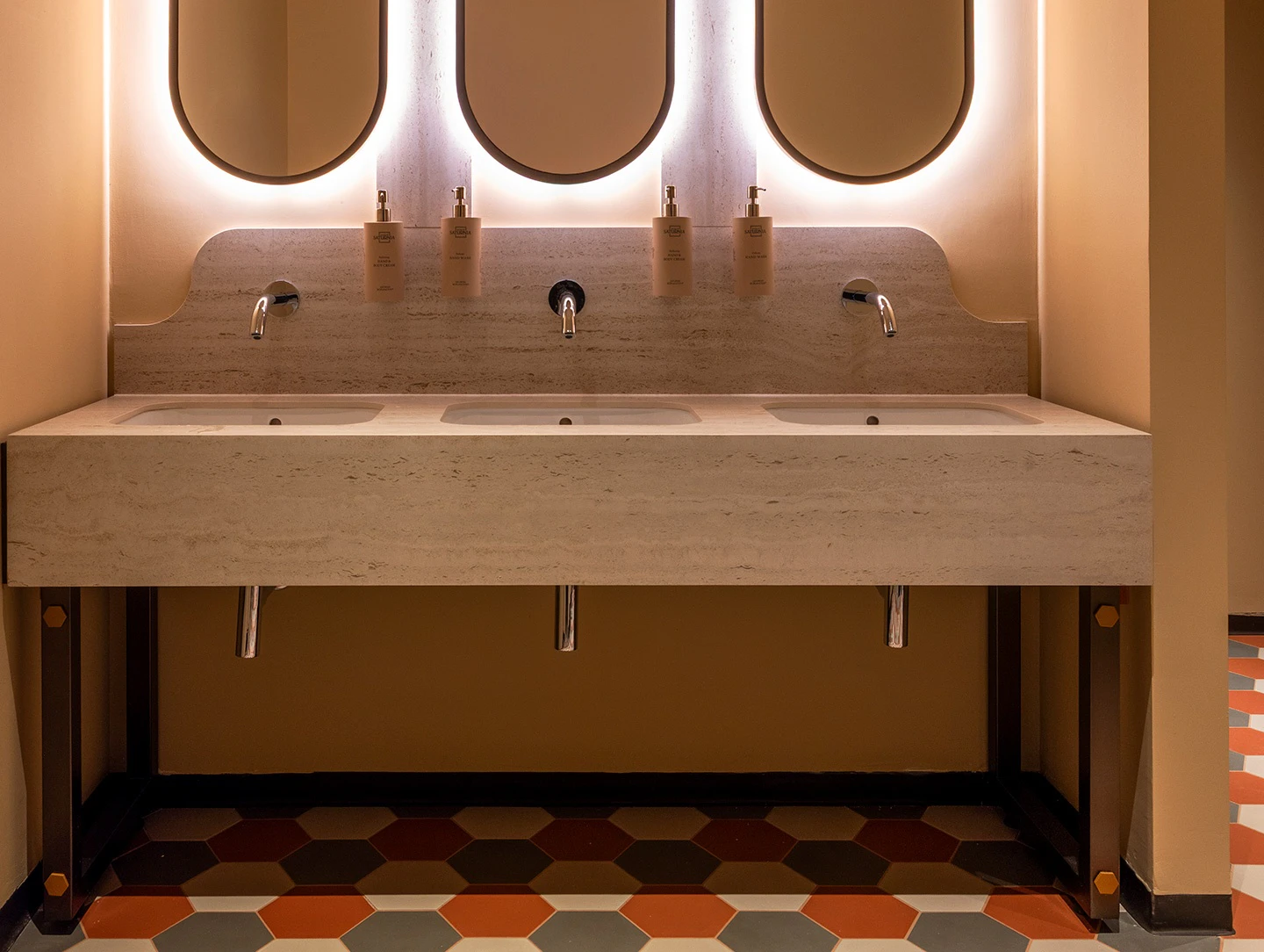 “Abbiamo scelto Dekton di Cosentino per la necessità di combinare resistenza tecnica, bellezza materiale e coerenza con il concetto di design. Per De Montel - Terme Milano abbiamo selezionato la collezione Marmorio, che richiama la texture e l'eleganza senza tempo del travertino, come omaggio agli antichi bagni romani. Questa scelta ci ha permesso di introdurre un linguaggio visivo che celebra la tradizione termale italiana, ma con le prestazioni e la sostenibilità di un materiale contemporaneo”, raccontano da THDP.
