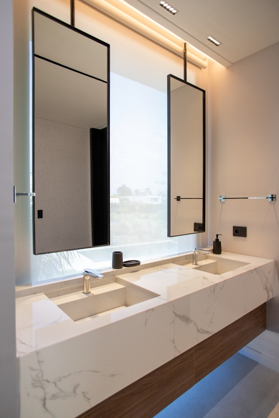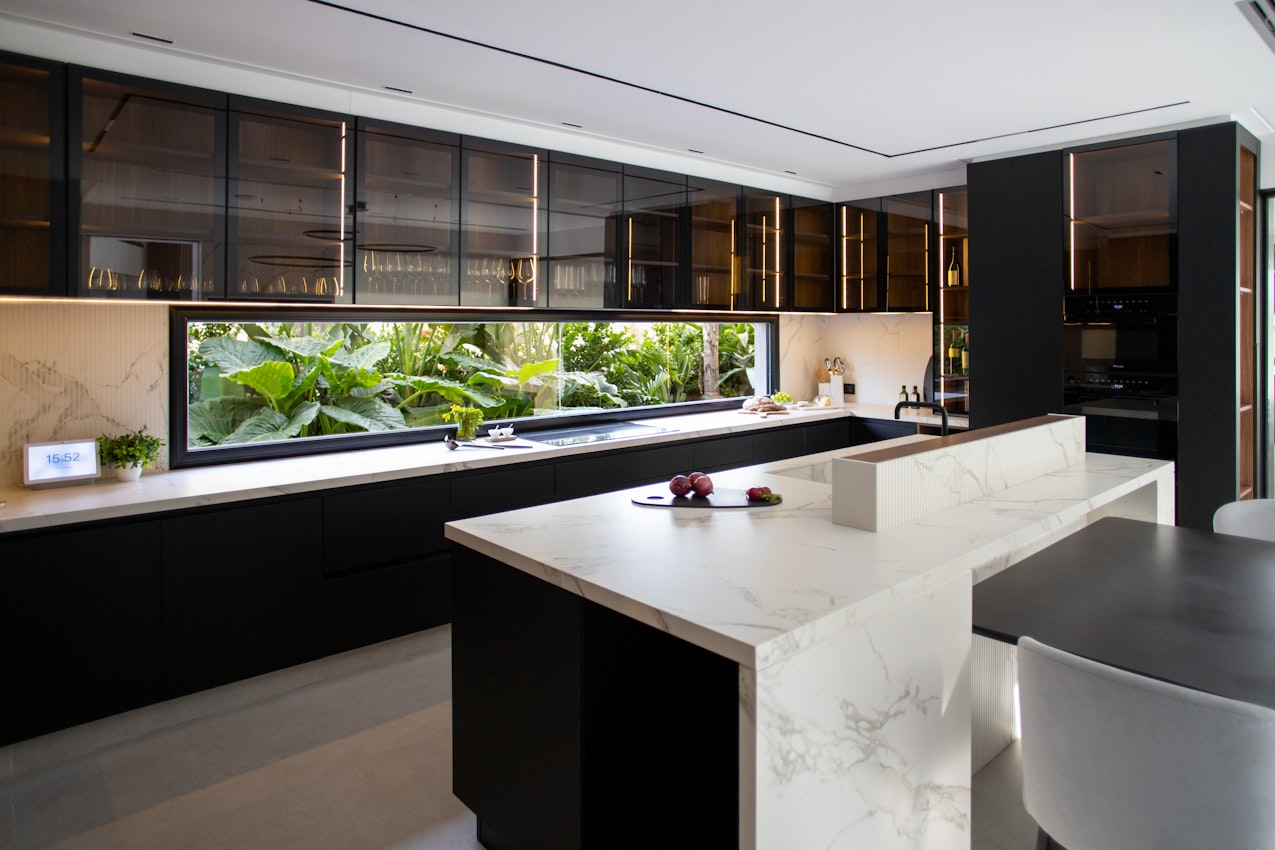 Dekton and Silestone are the key surfaces in this relaxed luxury home.